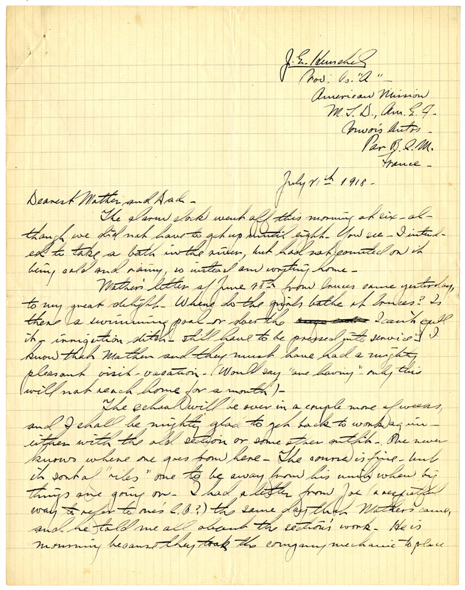 | Source | Henschel, James E. Letter to Mr. and Mrs. Leopold Henschel. 21 July 1918. James Edward Henschel Collection, 1917-1919. 1996.51. The National World War I Museum, Kansas City, Missouri. |