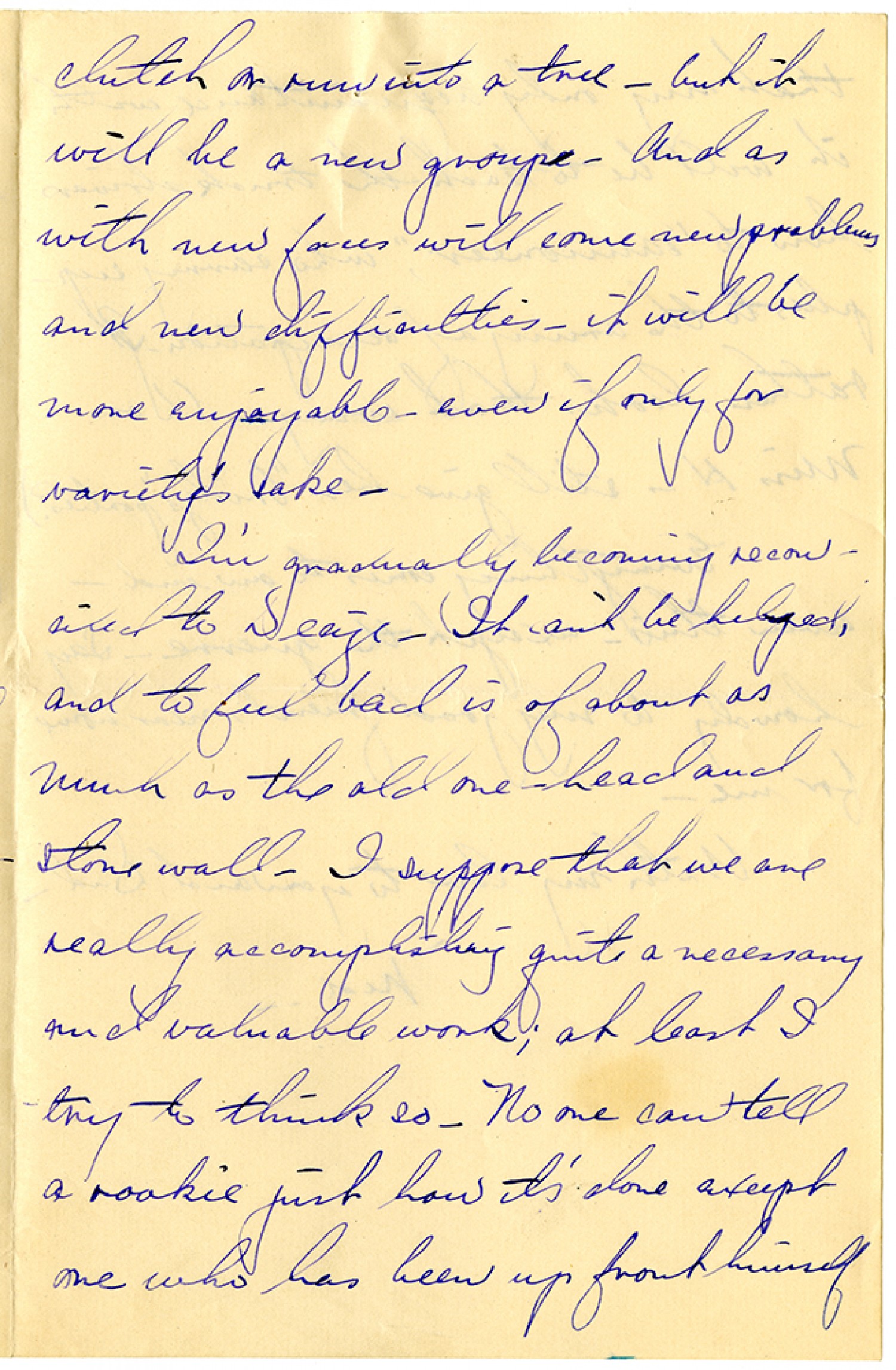 clutch or run into a tree - but it will be a new groupe. And as with new faces will come new problems and new difficulties - it will be more enjoyable - even if only for variety's sake. I'm gradually becoming reconciled to Decize. (It can't be helped, and to feel bad is of about as much as the old one - head and stone wall. I suppose that we are really accomplishing quite a necessary and valuable work; at least I try to think so. No one can tell a rookie just how it's alone except one who has been up front himself