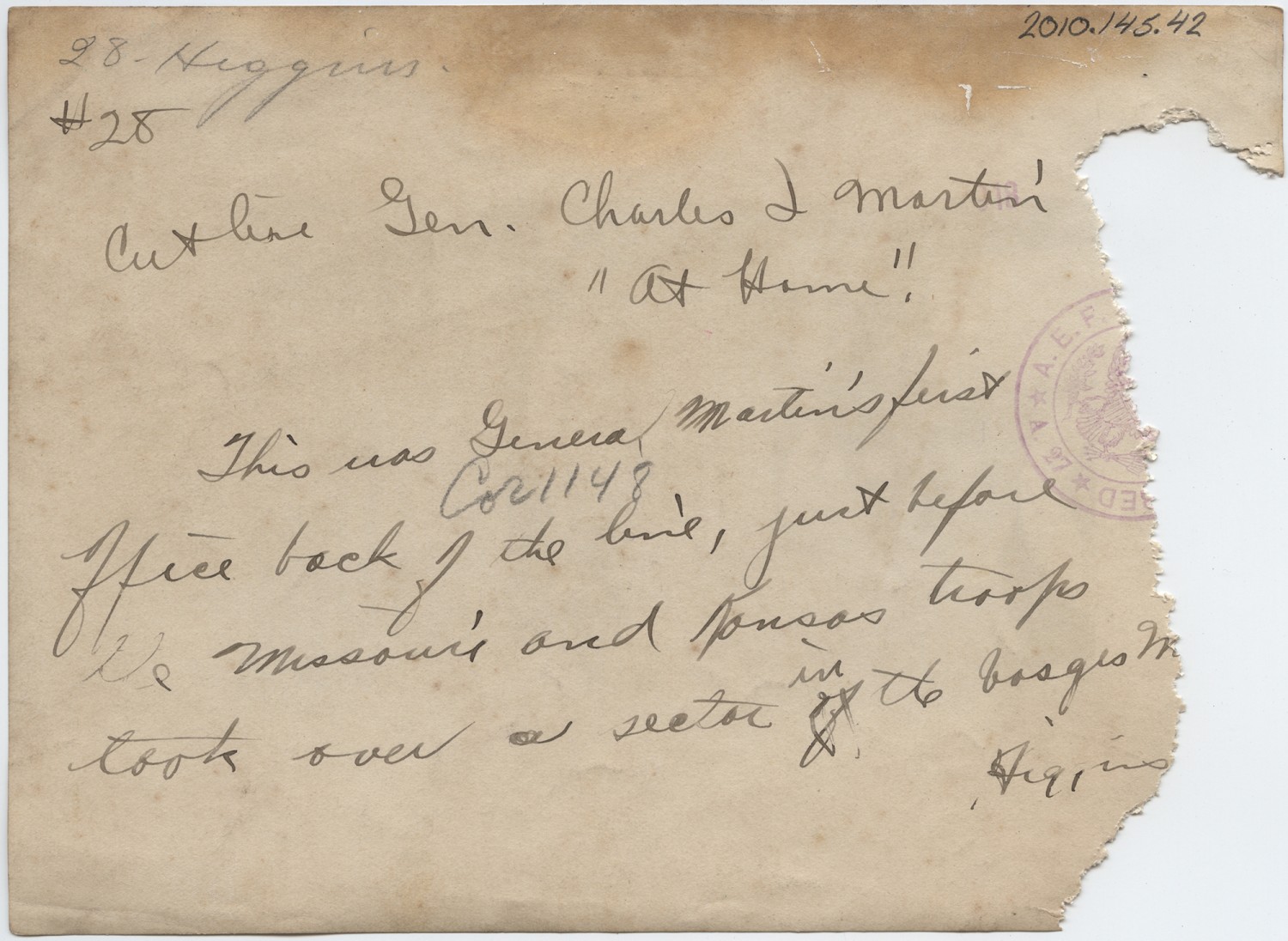 | Source | Higgins, Otto P. General Charles Martin. n.d. Higgins, Otto P. Collection. 2010.145.42. The National World War I Museum, Kansas City, Missouri. |