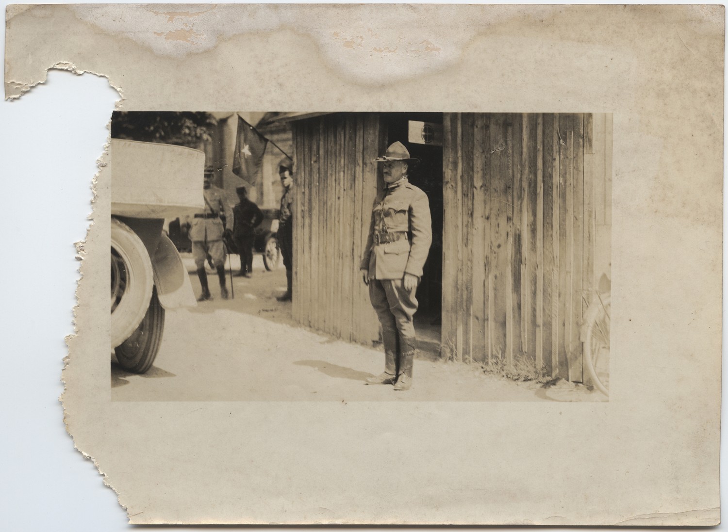 | Description | Otto Higgins did not serve in the United States military, but was assigned as a war correspondent for the Kansas City Star soon after the United States entered the world conflict and was with the American forces in all the major engagements in which they participated. He wrote and photographed soldiers from the Mid-West, especially Missouri and Kansas. Higgin's began his service with the old Third Regiment, and was with regiments at Camp Nichols, Fort Riley, Camp Funston, Camp Doniphan, Fort Leavenworth, Fort Sheridan, and finally in France. This is a photograph of General Charles Martin's office at the back of the line. |