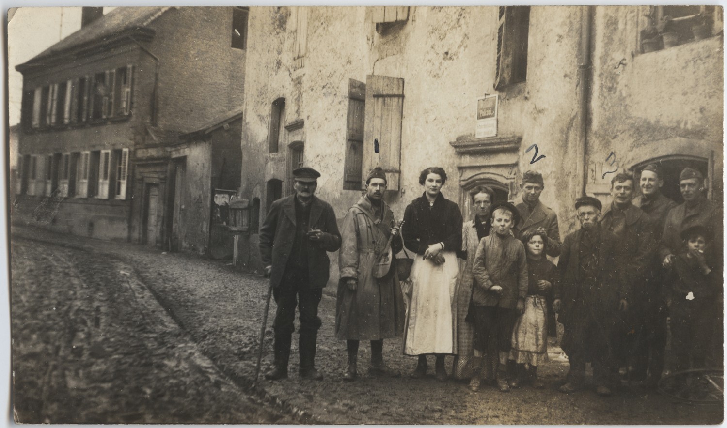 | Description | Otto Higgins did not serve in the United States military, but was assigned as a war correspondent for the Kansas City Star soon after the United States entered the world conflict and was with the American forces in all the major engagements in which they participated. He wrote and photographed soldiers from the Mid-West, especially Missouri and Kansas. Higgin's began his service with the old Third Regiment, and was with regiments at Camp Nichols, Fort Riley, Camp Funston, Camp Doniphan, Fort Leavenworth, Fort Sheridan, and finally in France. This is a photograph of a group of people including men, women, and children. Higgins identifies three other newspaper correspondents including one from the New York Herald, the Cincinnati Enquirer, and the Colliers Weekly. |