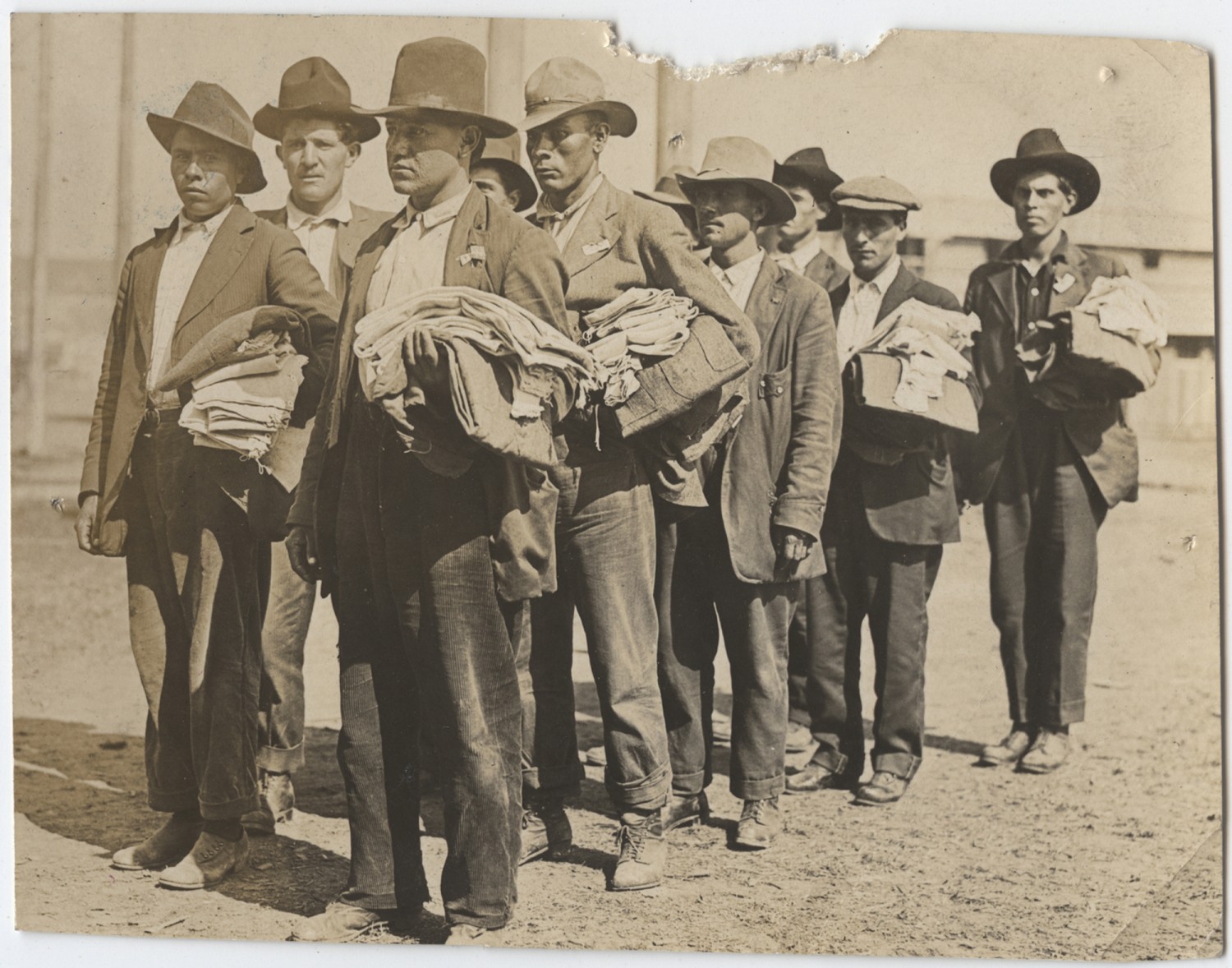 | Source | Higgins, Otto P. Men drawing their clothing. n.d. Higgins, Otto P. Collection. 2010.145.87. The National World War I Museum, Kansas City, Missouri. |
