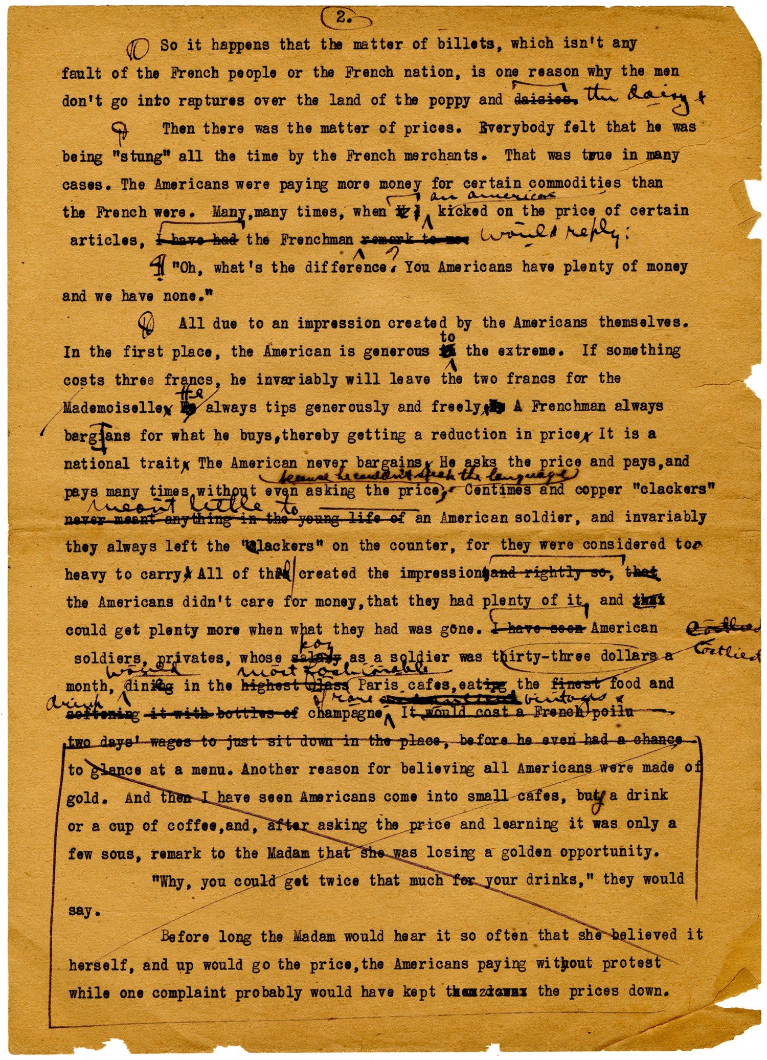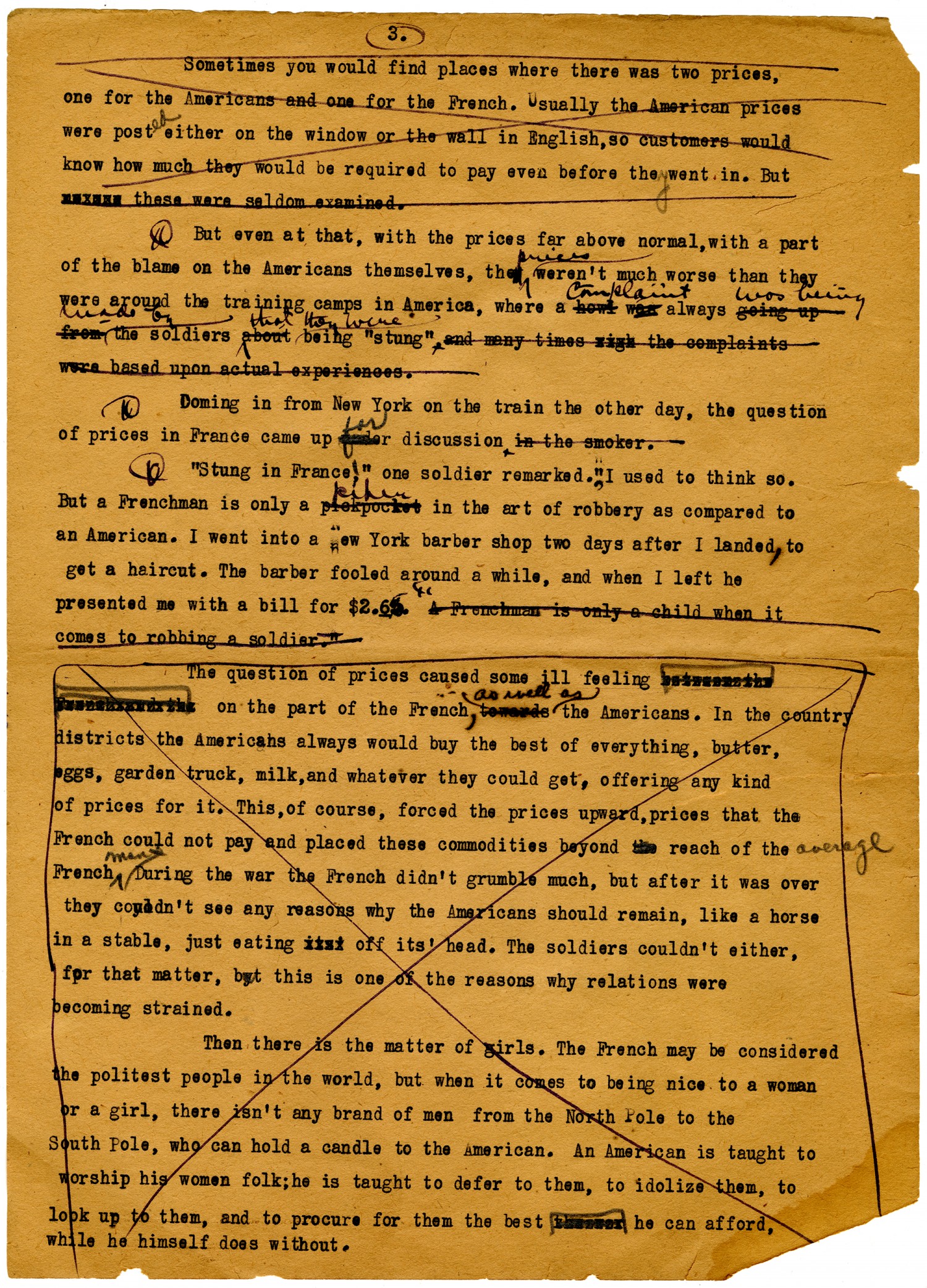 [m.s. crossed out Not so in France] A woman