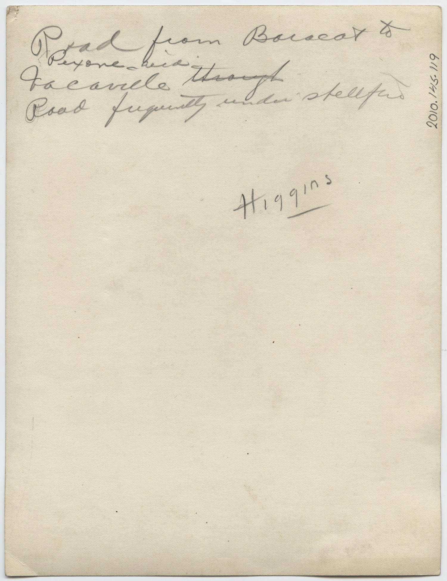 | Source | Higgins, Otto P. Road from Baccarat. n.d. Higgins, Otto P. Collection. 2010.145.119. The National World War I Museum, Kansas City, Missouri. |