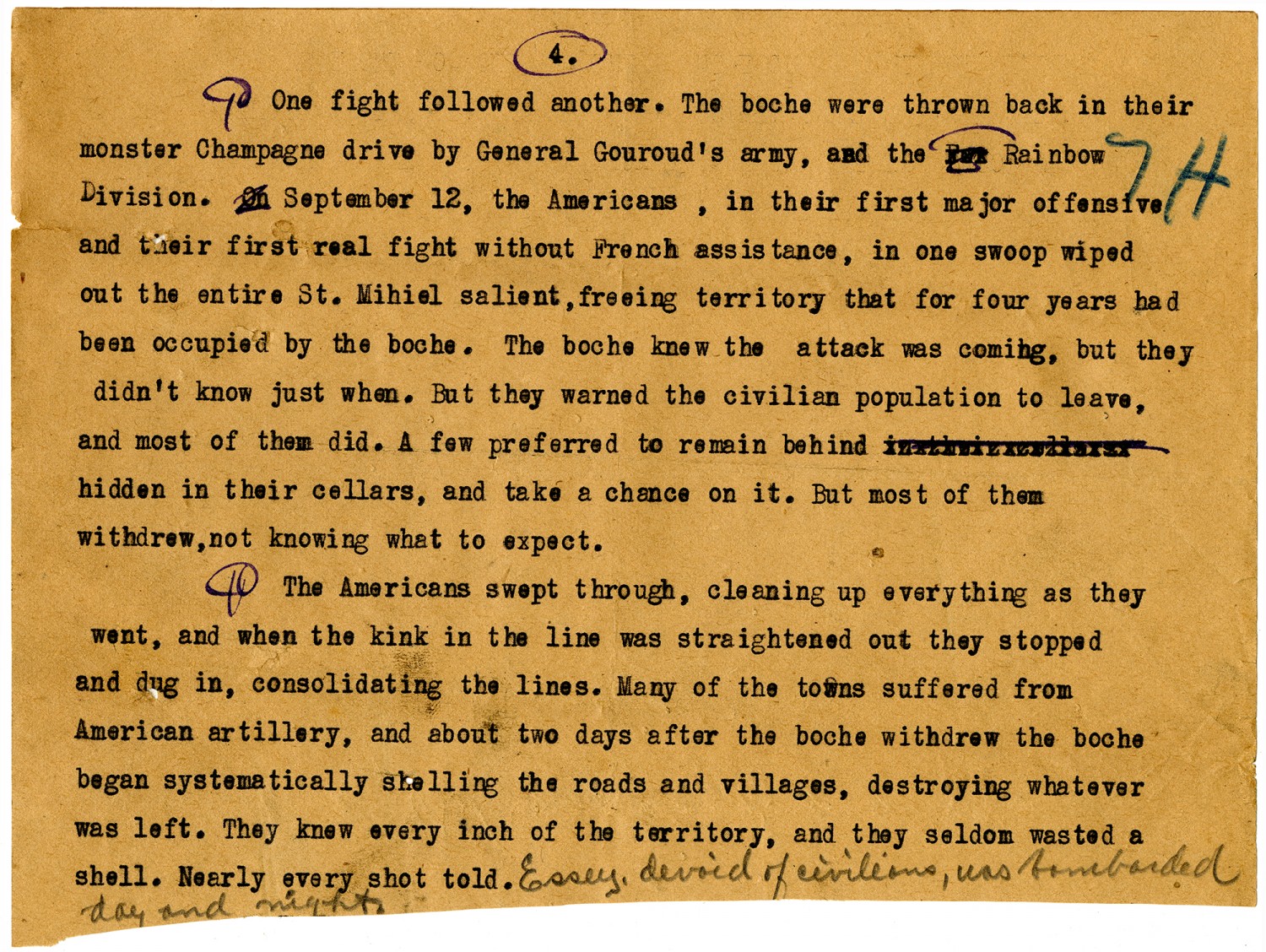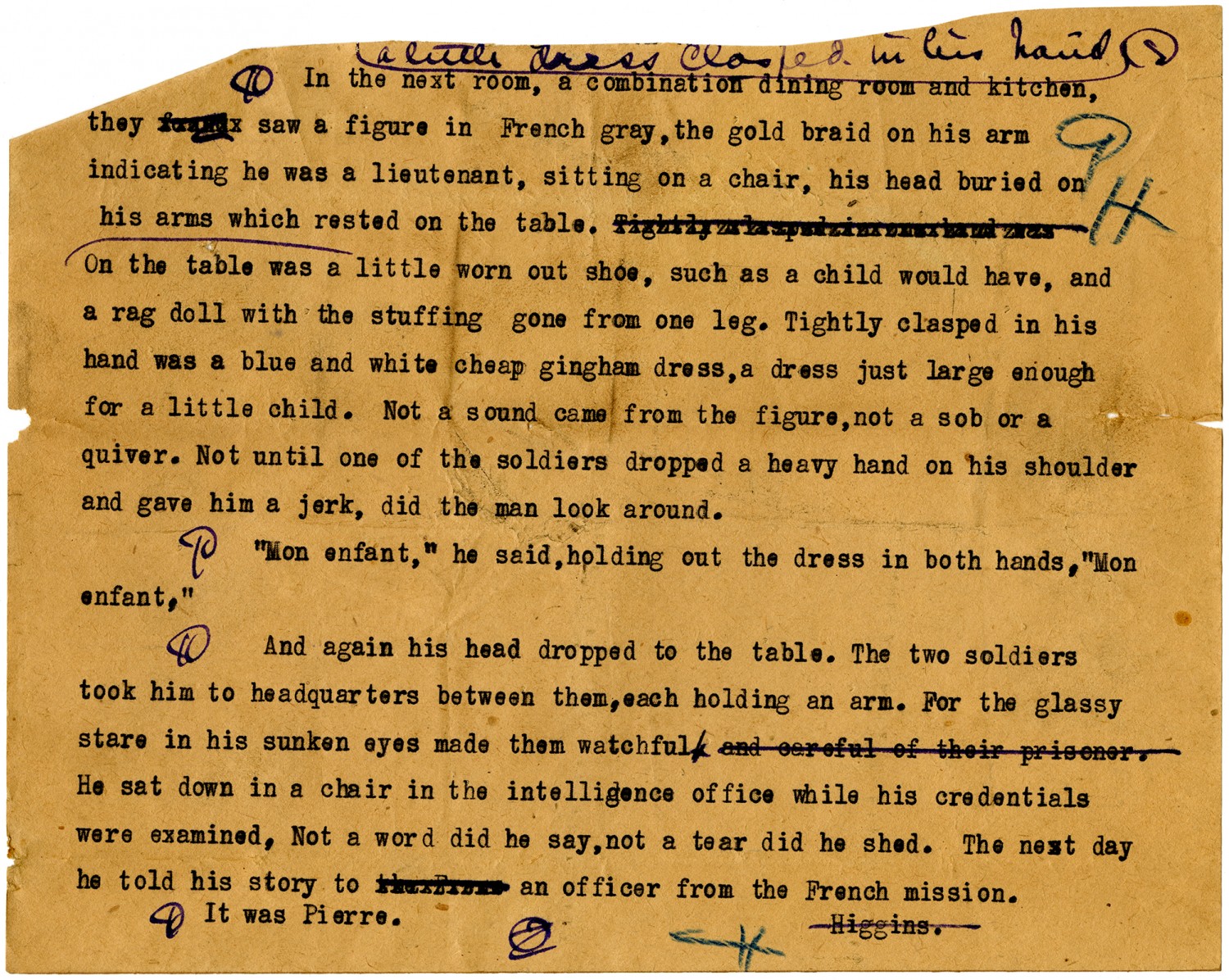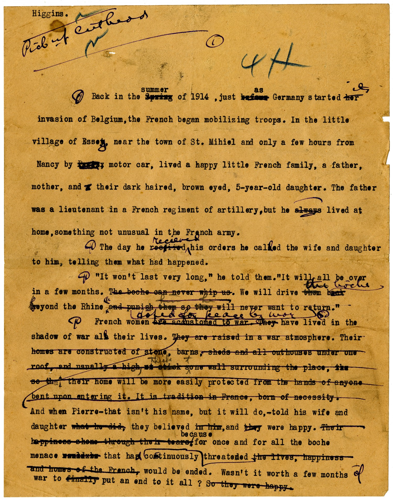 | Source | Higgins, Otto P. Short Story. n.d. Higgins, Otto P. Collection. 2010.145. The National World War I Museum, Kansas City, Missouri. |