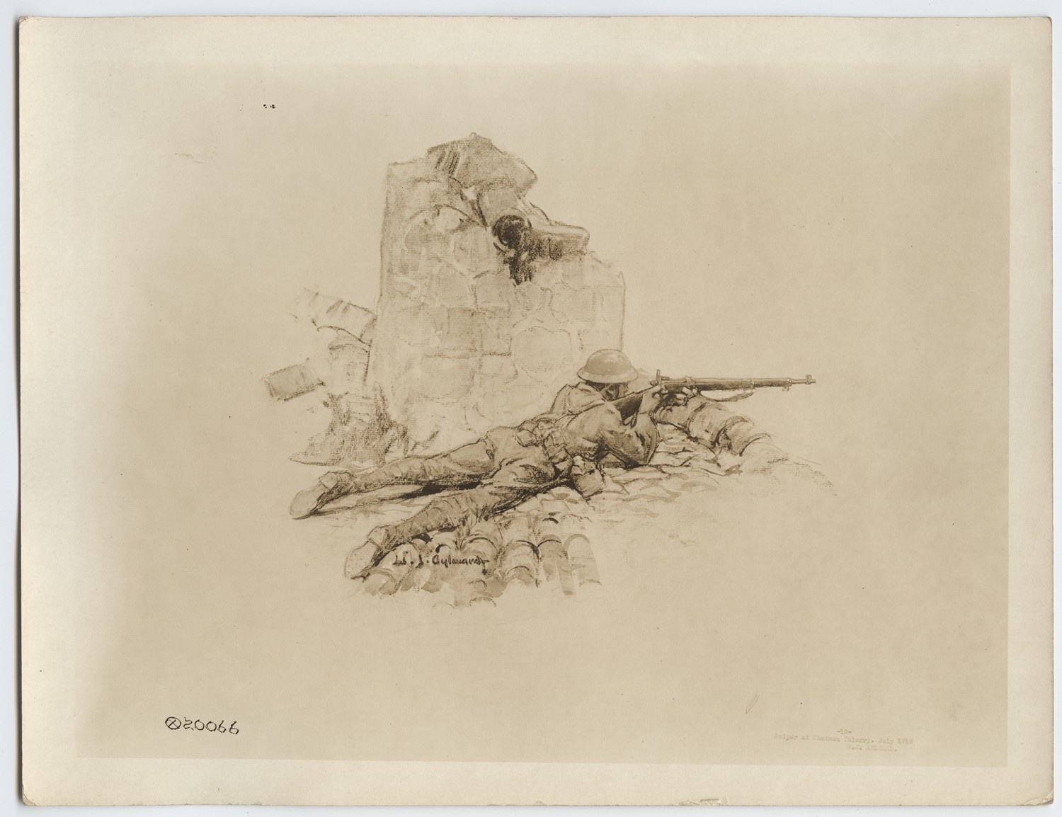 | Source | Higgins, Otto P. Sniper at Chateau Thierry. n.d. Higgins, Otto P. Collection. 2010.145.121. The National World War I Museum, Kansas City, Missouri. |