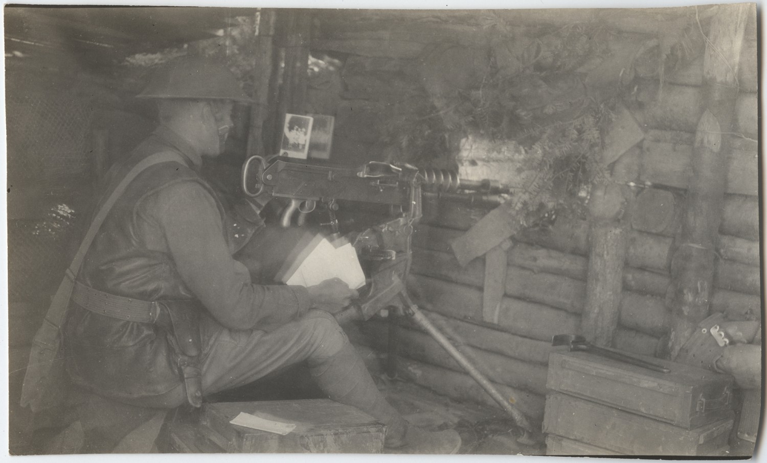 | Source | Higgins, Otto P. Soldier in Machine Gun Nest. n.d. Higgins, Otto P. Collection. 2010.145.61. The National World War I Museum, Kansas City, Missouri. |