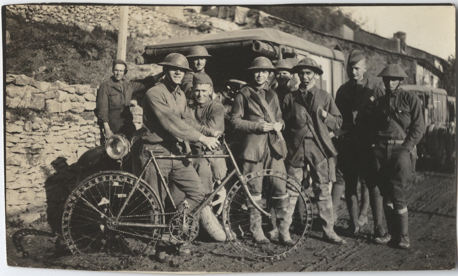 | Source | Higgins, Otto P. Soldiers and bicycle. n.d. Higgins, Otto P. Collection. 2010.145.55. The National World War I Museum, Kansas City, Missouri. |