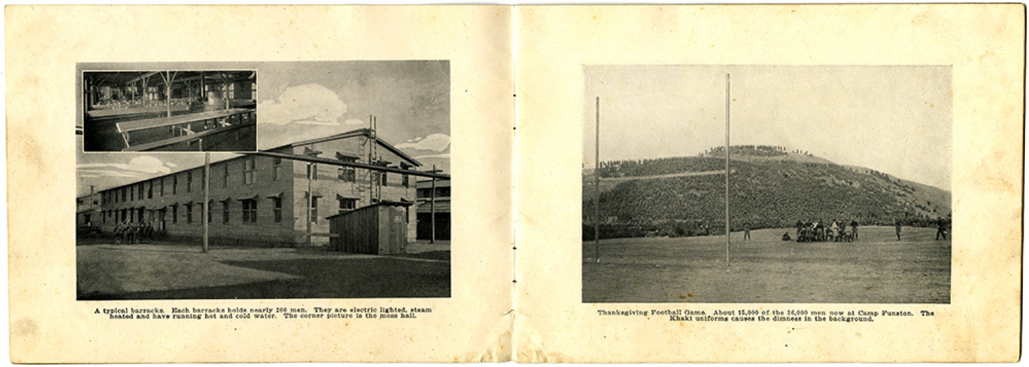 | Description | Camp Funston Photograms is a compilation of images from around the camp with brief descriptions. Images include barracks, YMCA, YWCA, and Knights of Columbus buildings, as well as a map of Camp Funston. |