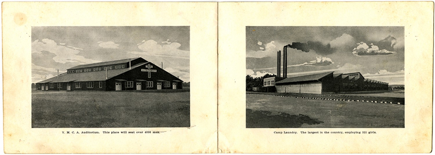 Y.M.C.A. Auditorium. This place will seat over 4000 men. Camp Laundry. The largest in the country, employing 325 girls.