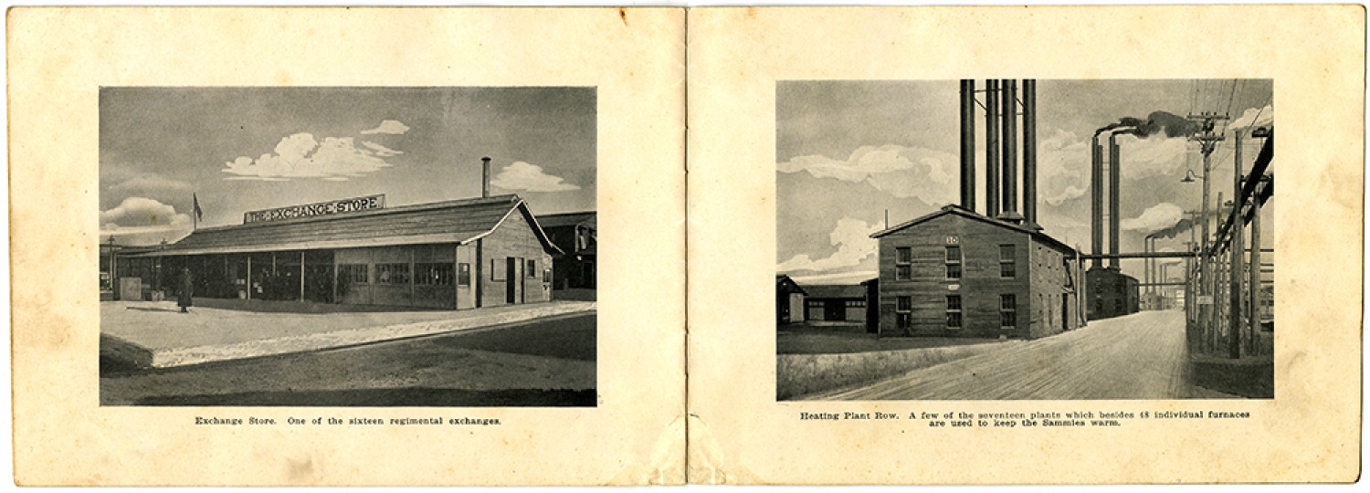 Exchange Store. One of the sixteen regimental exchanges. Heating Plant Row. A few of the seventeen plants which besides 48 individual furnaces are used to keep the Sammies warm.