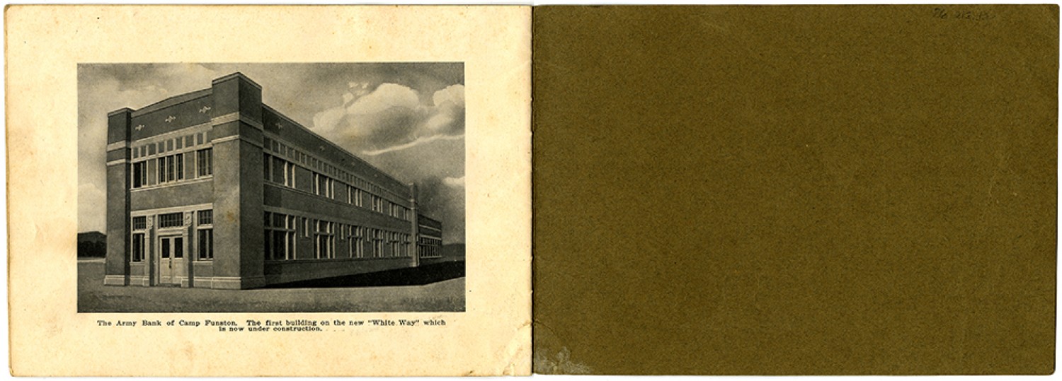 The Army Bank of Camp Funston. The first building on the new “White Way” which is now under construction.