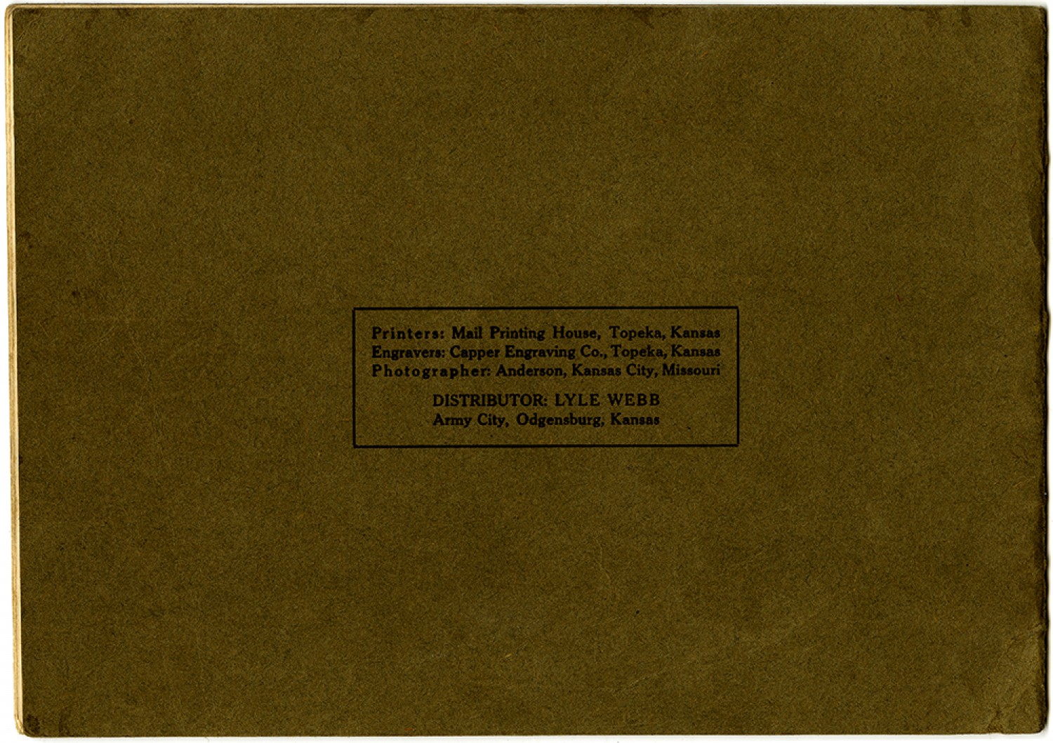 Printers: Mall Printing House, Topeka, Kansas Engravers: Capper Engraving Co., Topeka, Kansas Photographer: Anderson, Kansas City, Missouri DISTRIBUTOR: LYLE WEBB Army City, Odgensburg, Kansas