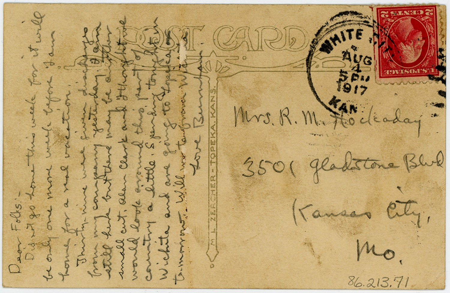 | Title | James Kellogg Burnham Hockaday Postcard to Mrs. R.M.Hockaday - August 4, 1917 |