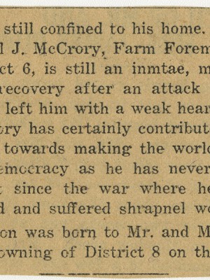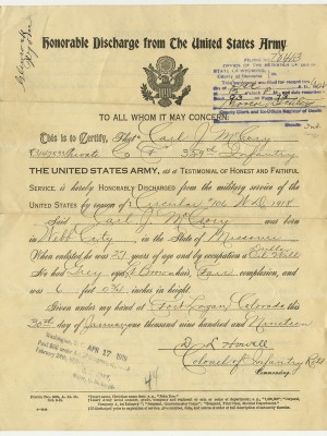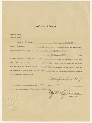 This collection consist of letters, documents, postcards and ephemeral material related to the service of Carl J. McCrory, who resided in Polk County Missouri for a portion of his life.