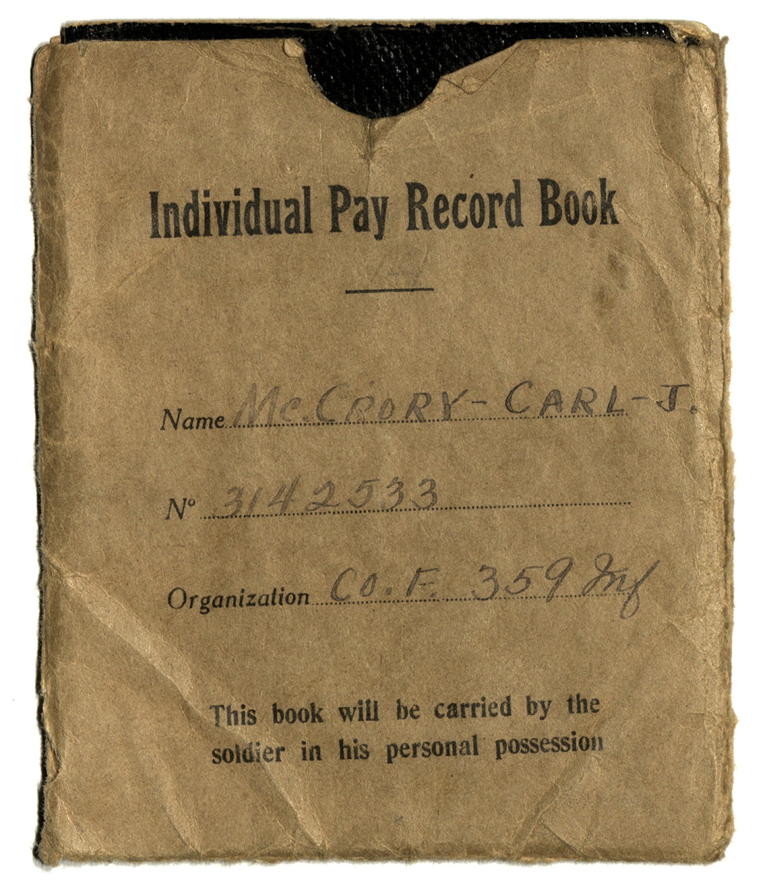 | Description | An Individual pay record book belonging to Carl J. McCrory. |