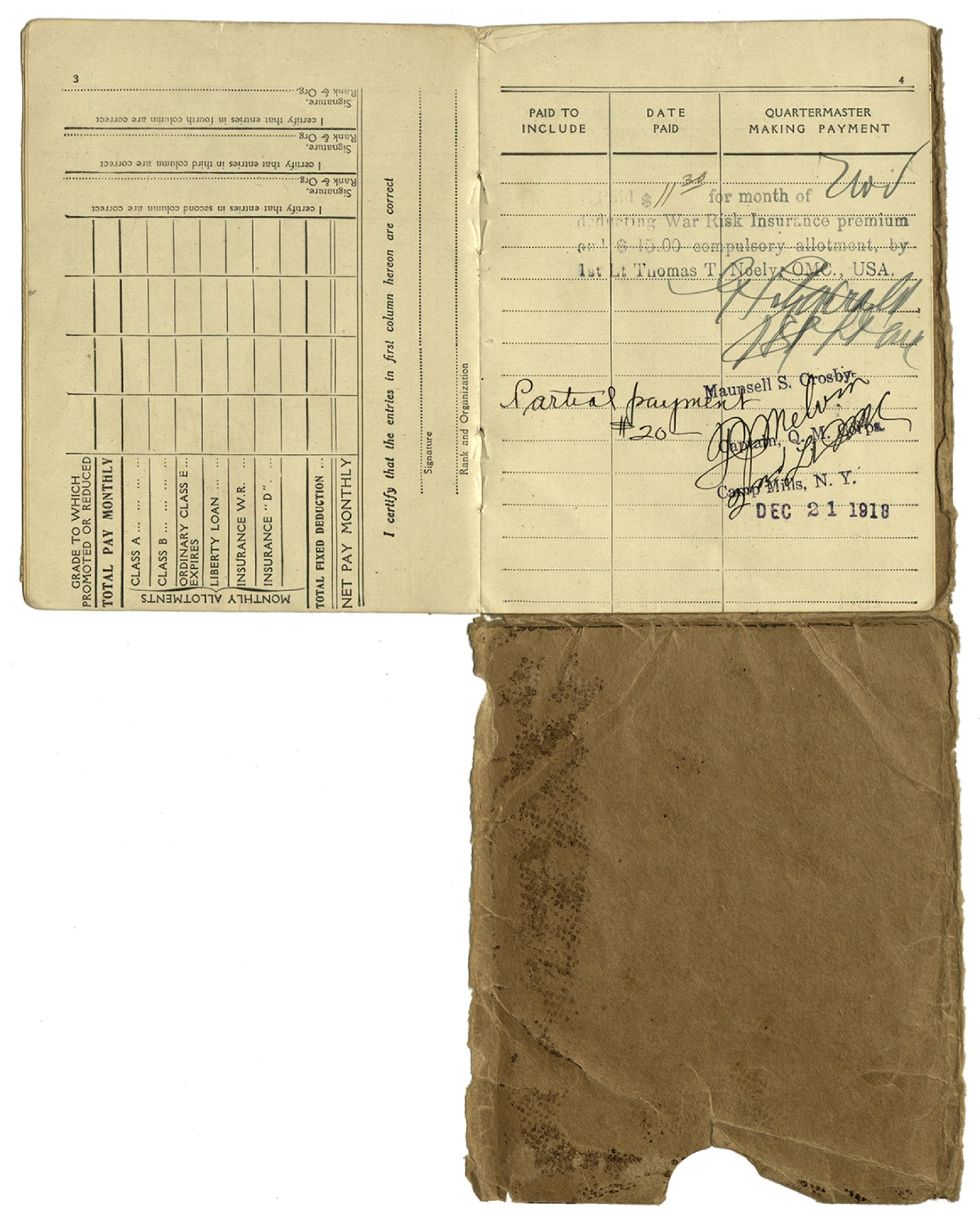 Individual Pay Record Book - ca. 1918