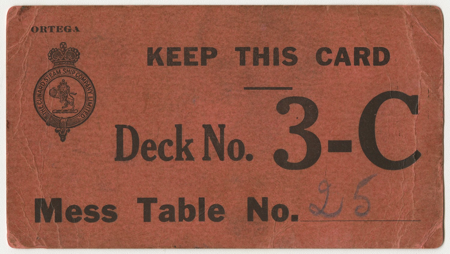 | Description | A ship's mess card from the Cunard Steam Ship Company Limited. |