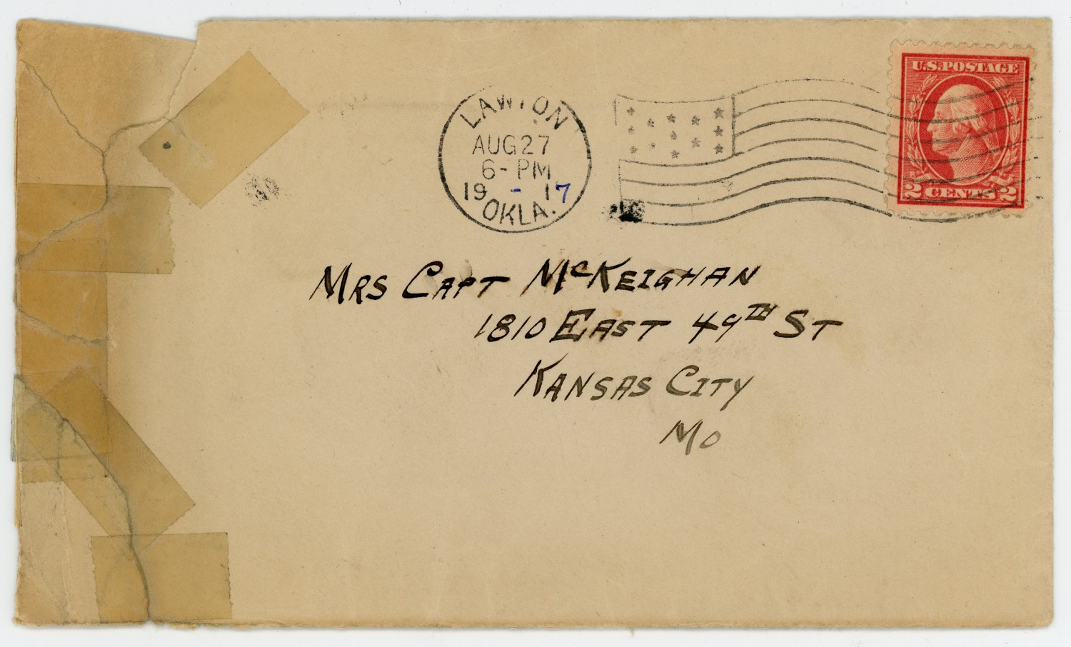 [envelope] LAWTON [August] 27 6 - PM 1917 [Oklahoma] MRS CAPT McKEIGHAN 1810 EAST 49TH ST KANSAS CITY [Missouri]