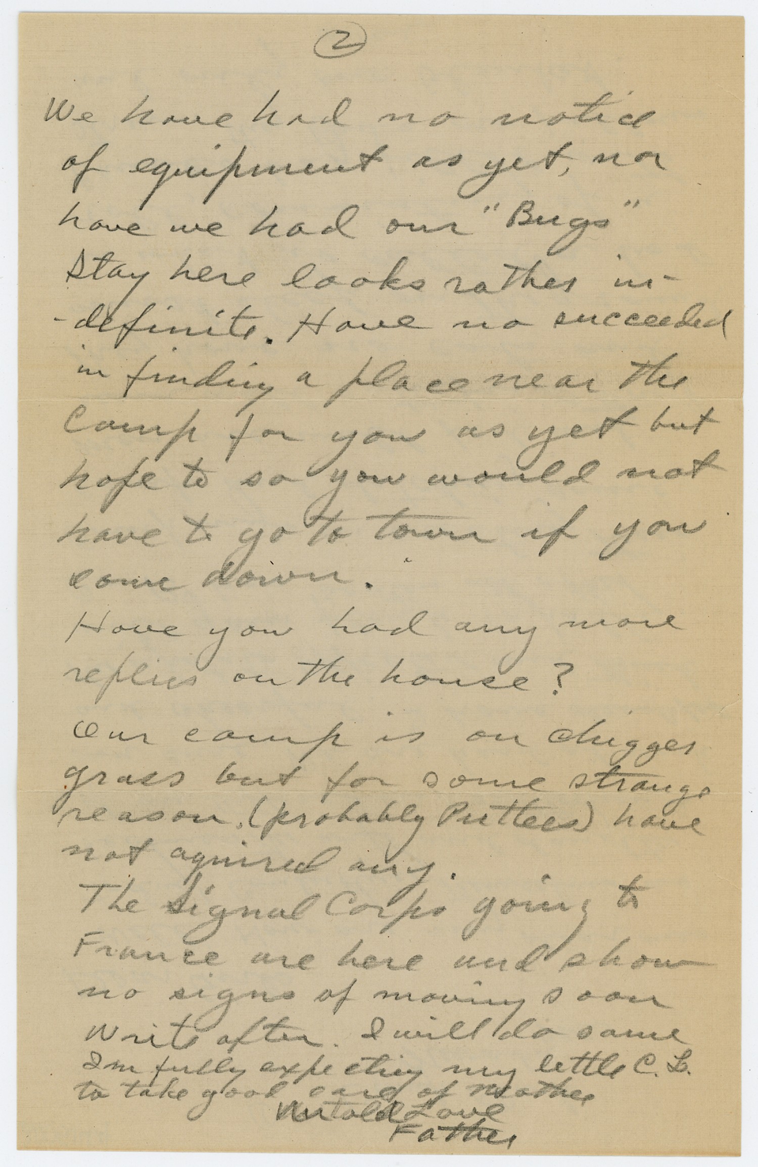 [page 2] We have had no notice of equipment as yet, nor have we had our