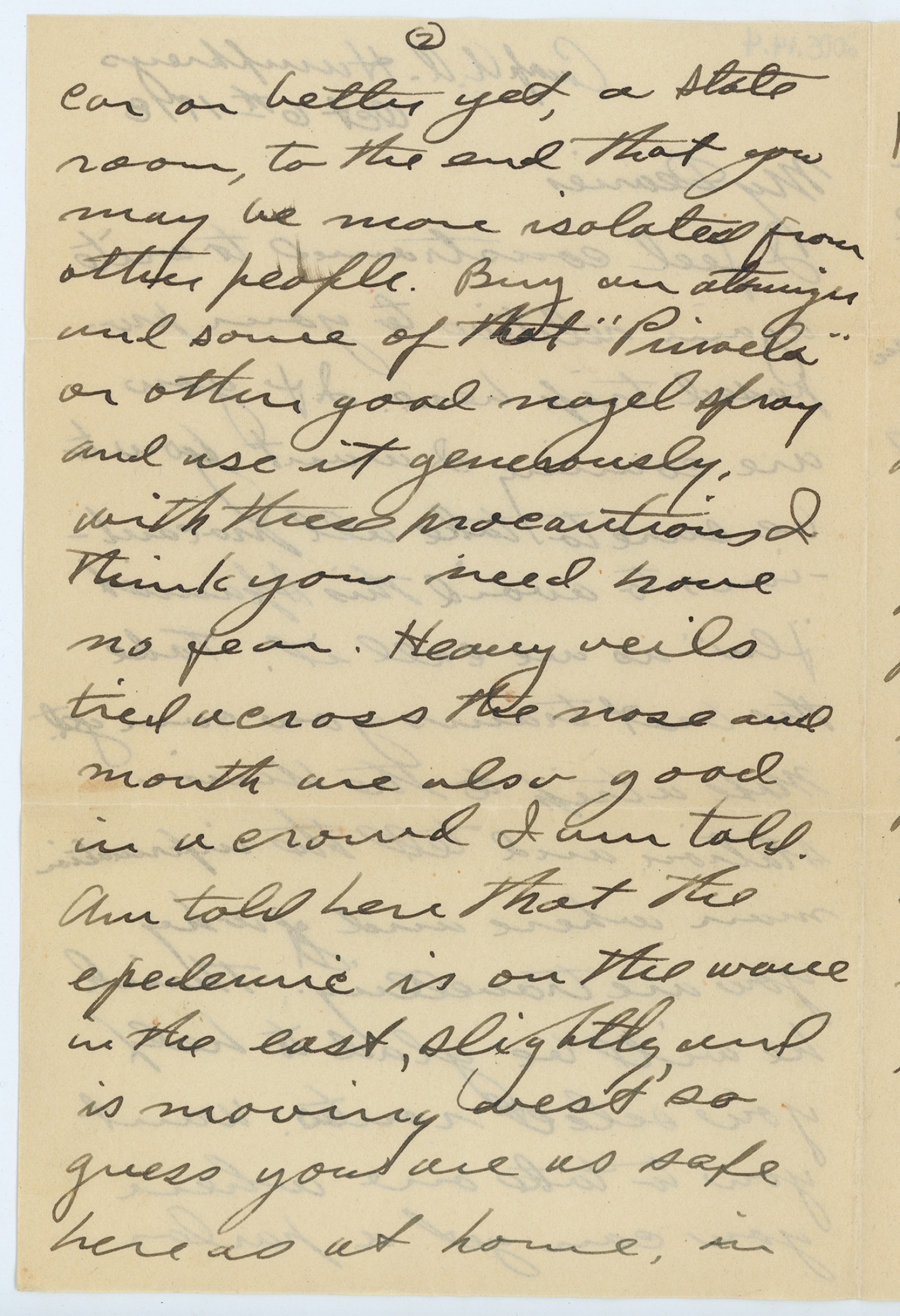 [page 2] car or better yet, a State room, to the end that you may be more isolated from other people. Buy an [ms illegible: 1 wd] and some of the