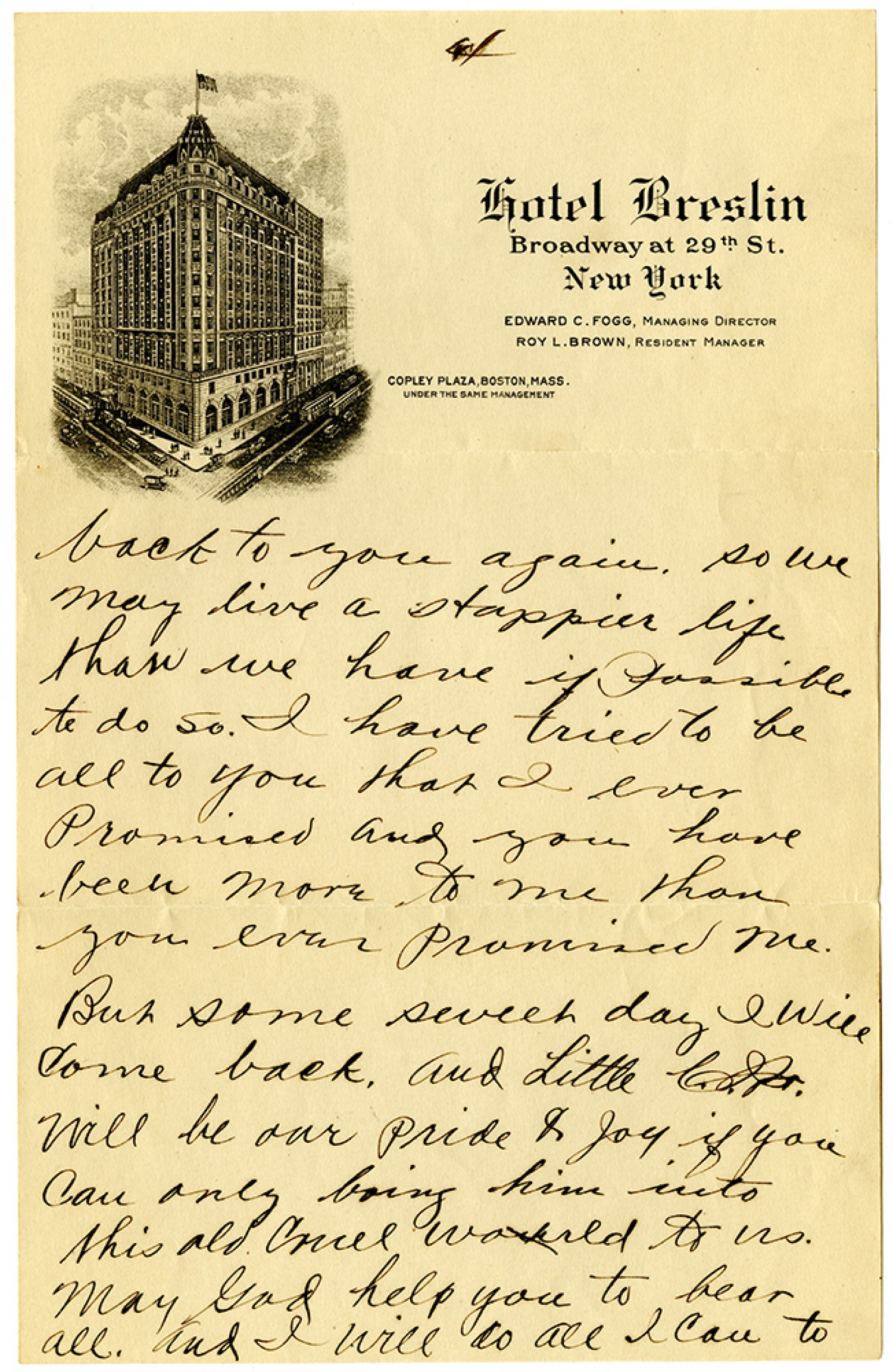 [page 4] back to you again. so we may live a Happier life than we have if possible to do so. I have tried to be all to you that I ever promised and you have been more to me than you ever promised me. But some sweet day I will come back. And Little C. J. Jr. will be our pride & joy if you can only bring him into this old cruel world to us. May God help you to bear all. And I will do all I can to