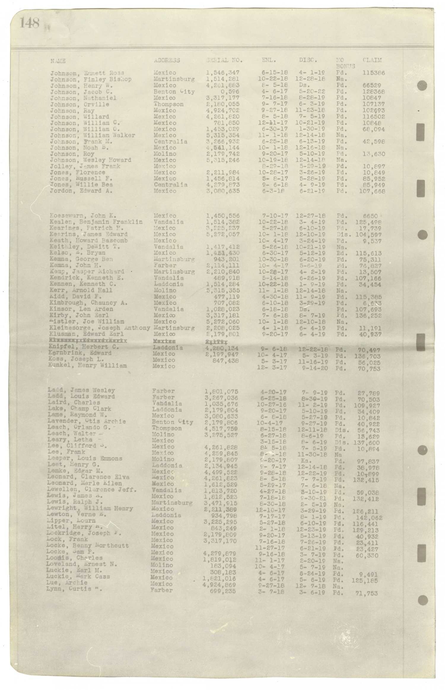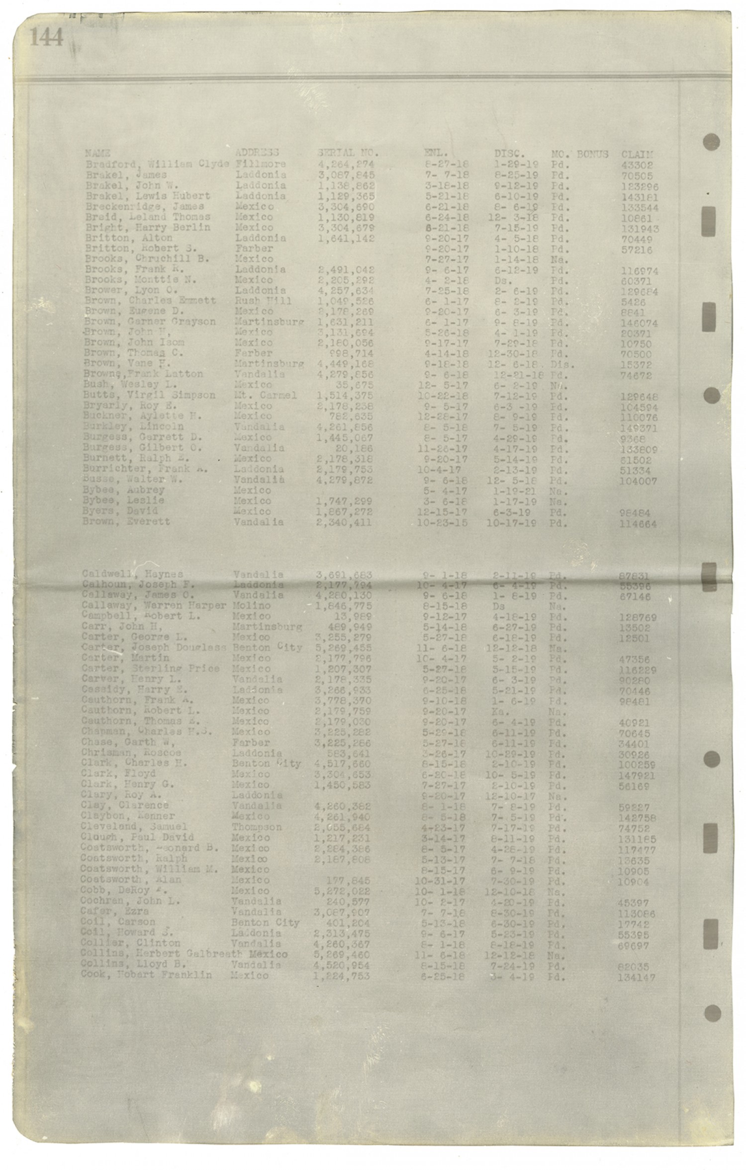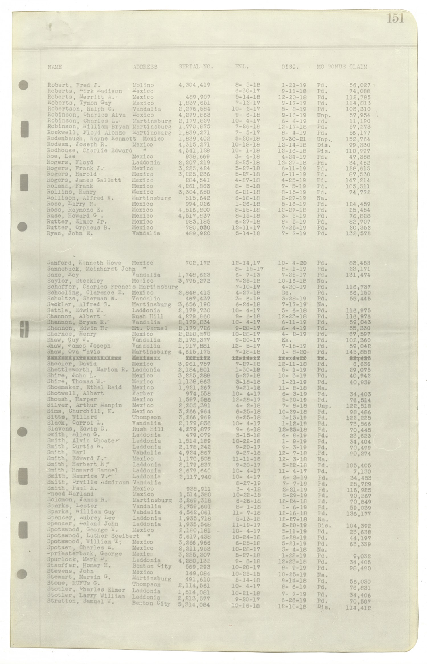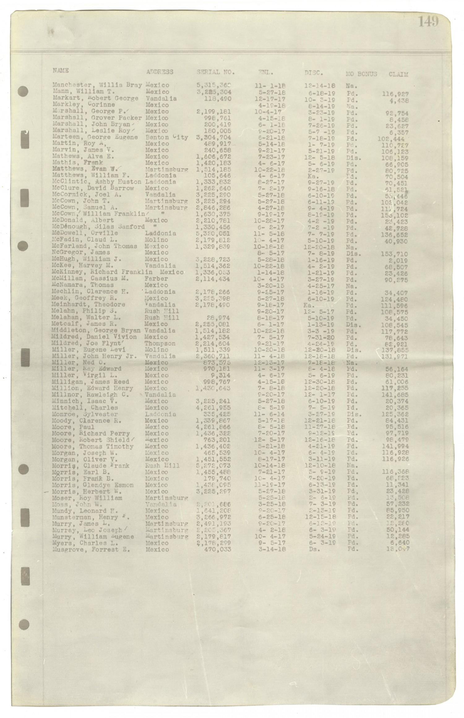 County service banner for Audrain County. Audrain County had 954 men serve and 27 die in the service. In the 1920s, the Missouri Legislature wanted to honor the state’s veterans of the Great War. They appropriated money to match that raised by individual counties to create Service Banners representing the servicemen and women from each county. In 1924, sixty-eight counties presented banners to the state. Over the next two decades, several more were presented. Today the banners in the Missouri State Museum’s collection represent ninety-eight counties plus the City of St. Louis.