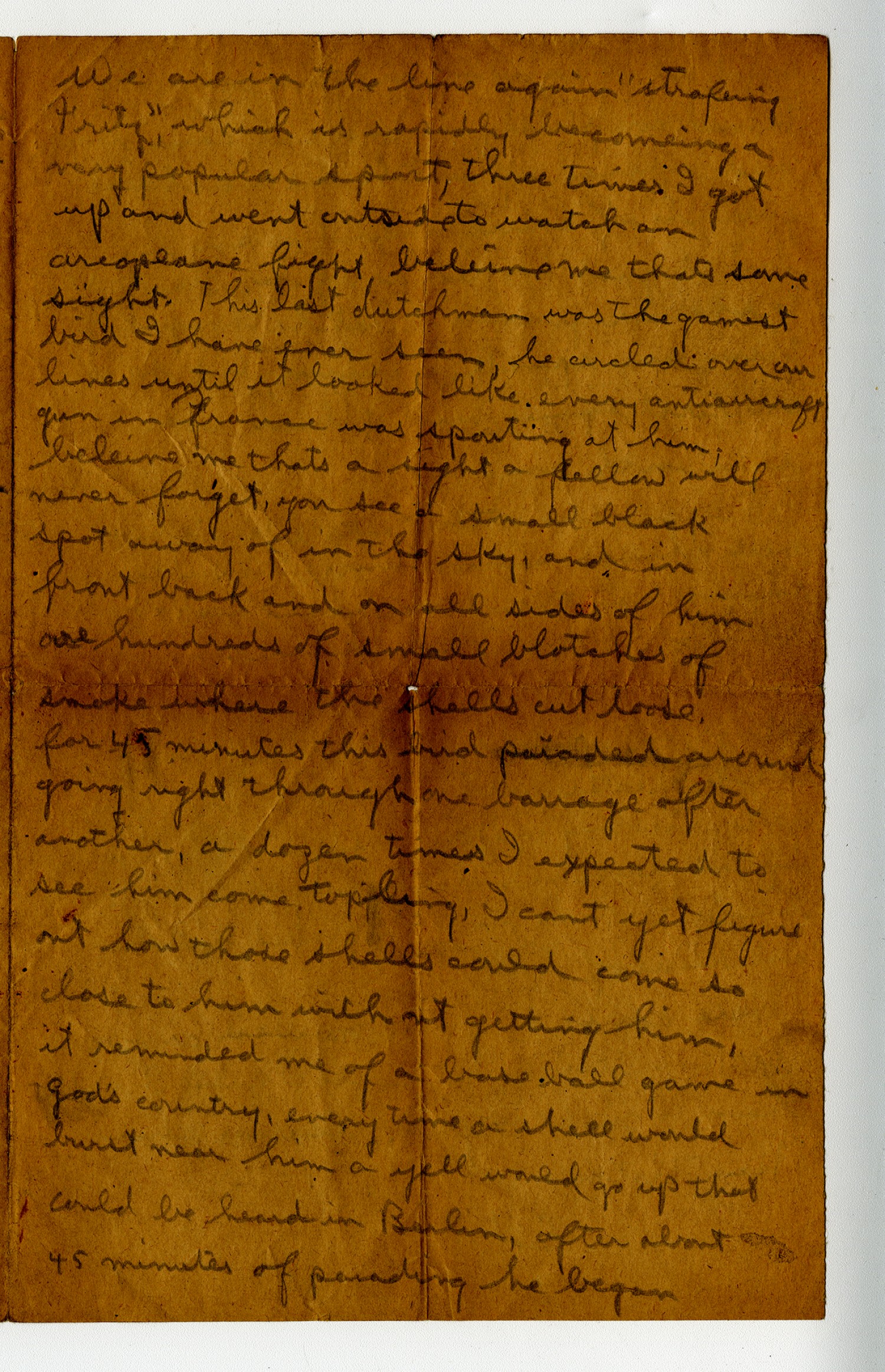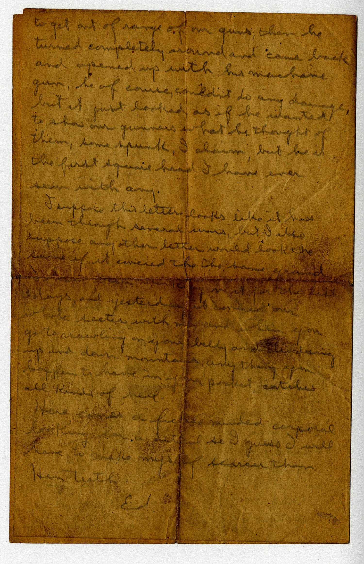 to get out of range of our guns; then he turned completely around and came back and opened up with his machine gun, he of course, couldn