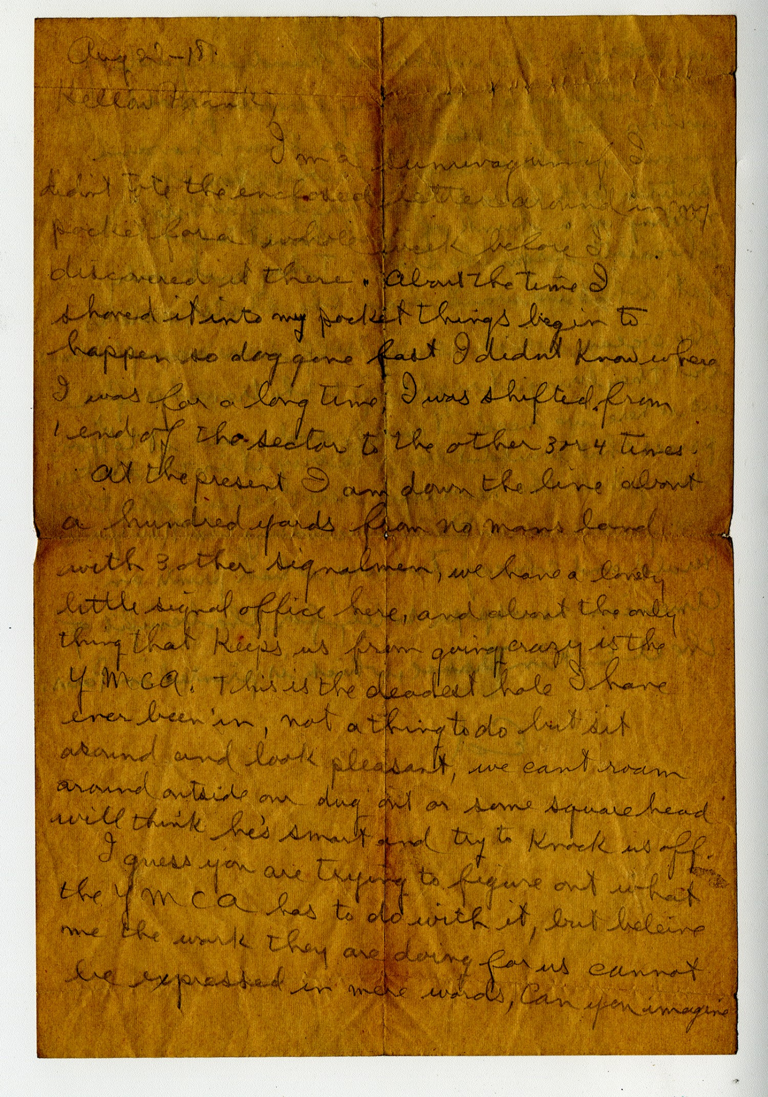 | Source | Meier, Edward. Letter to Frank. 22 August 1918. World War I Collection. A1771. Missouri History Museum, St. Louis, Missouri. |