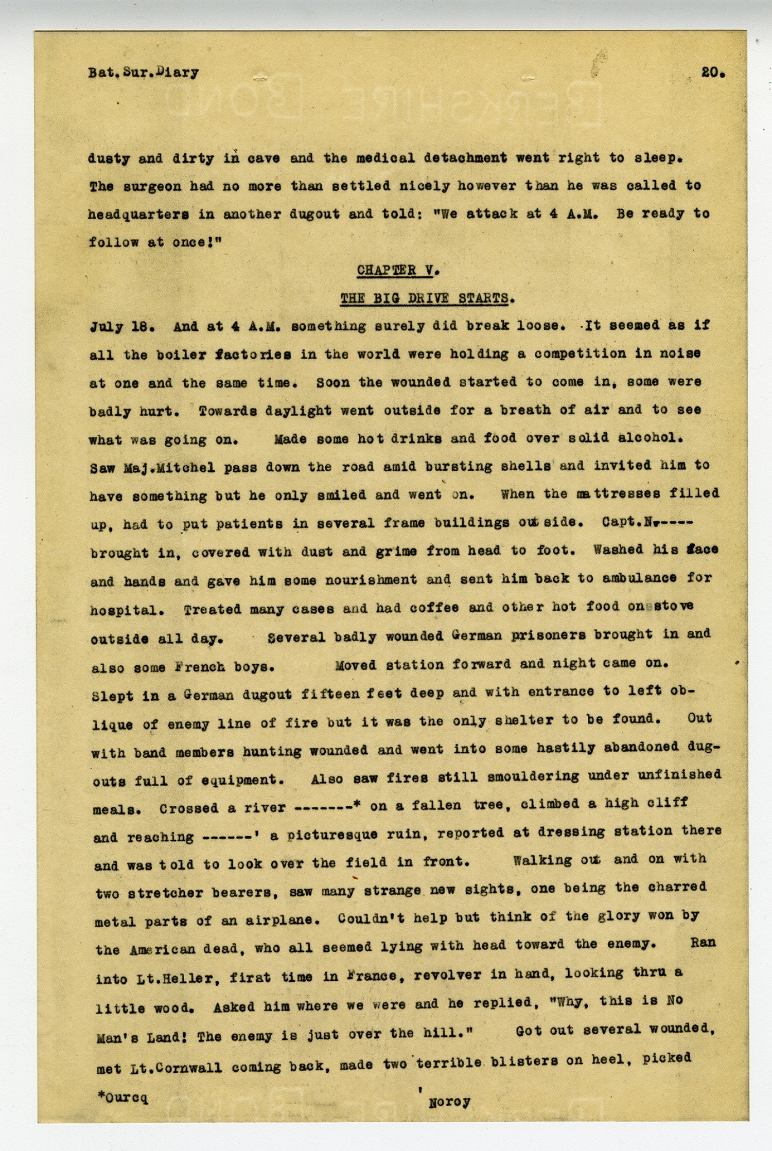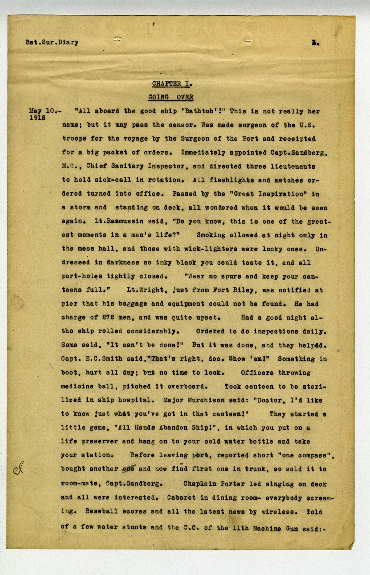 [page 1] Bat. Sur. Diary Chapter I. Going Over May 10.-1918