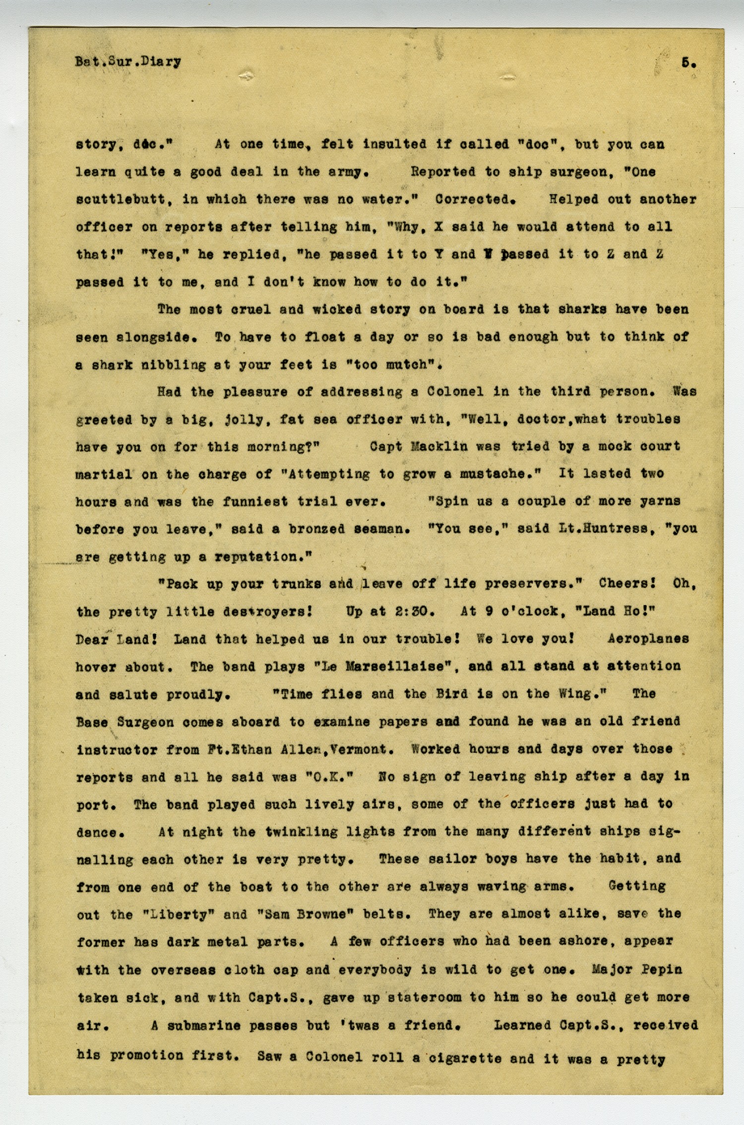 [page 5] Bat. Sur. Diary story, doc.