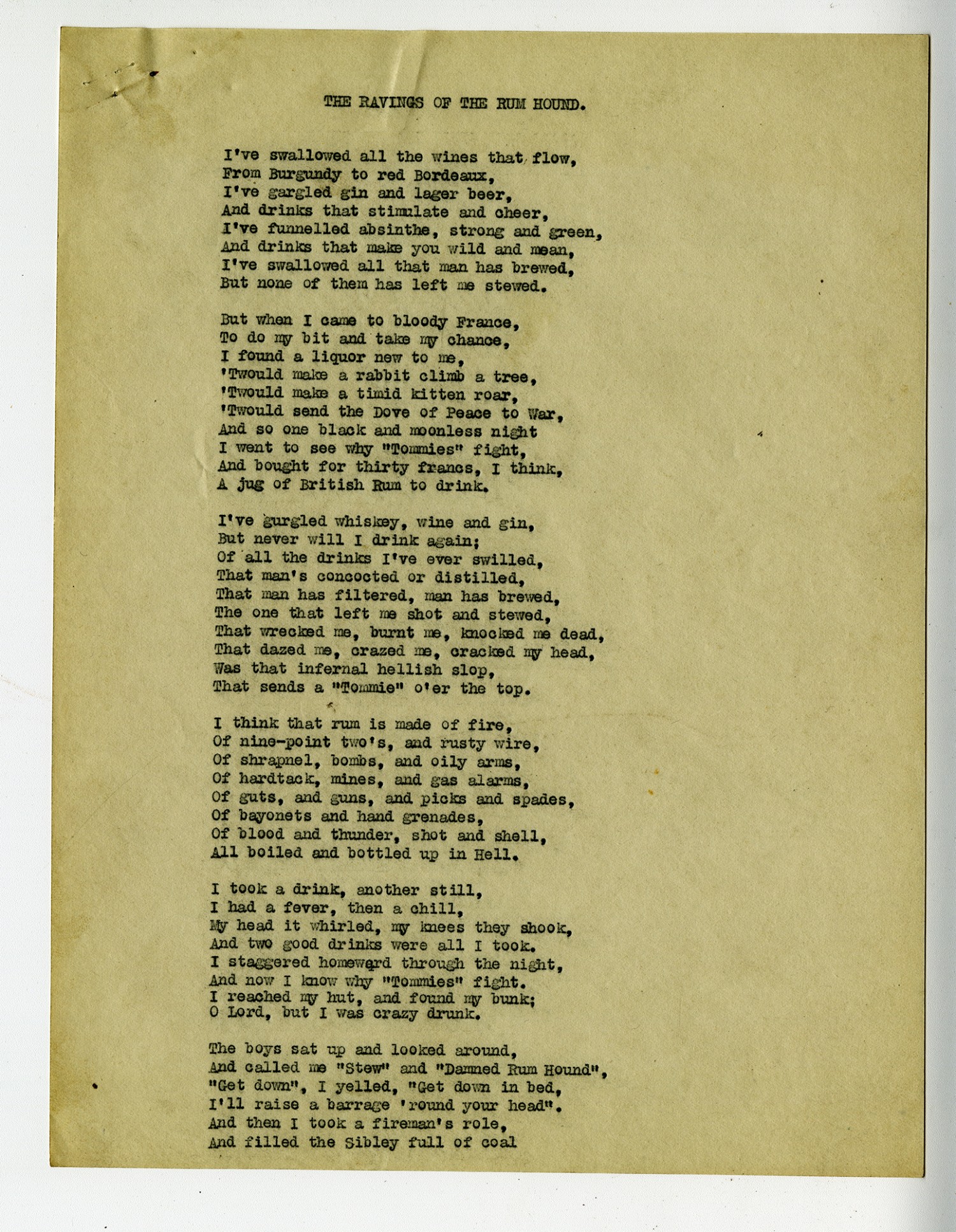 | Source | Kelly, Hubert W. The Ravings of the Rum Hound. November 1917. World War I Collection. A1771. Missouri History Museum, St. Louis, Missouri. |
