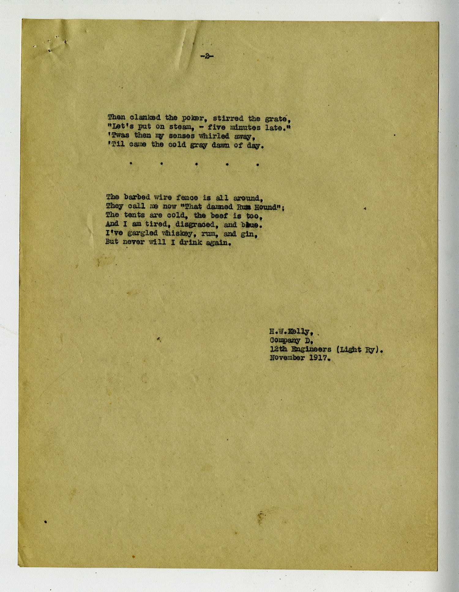 | Description | Poem written by Hubert W. Kelly of Company D of the 12th Engineers Light Railway. |