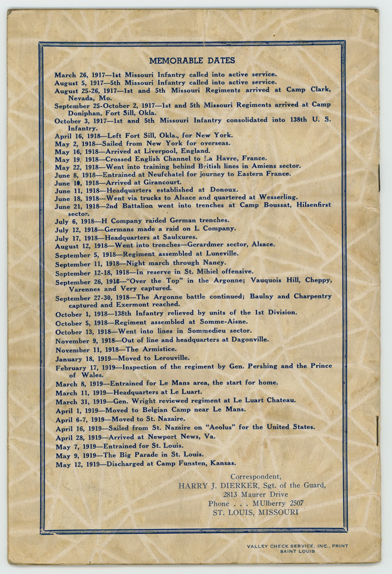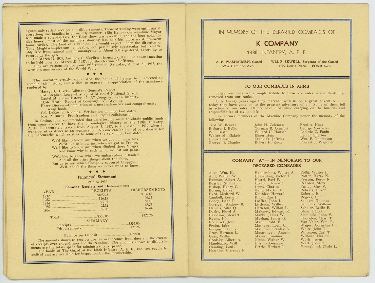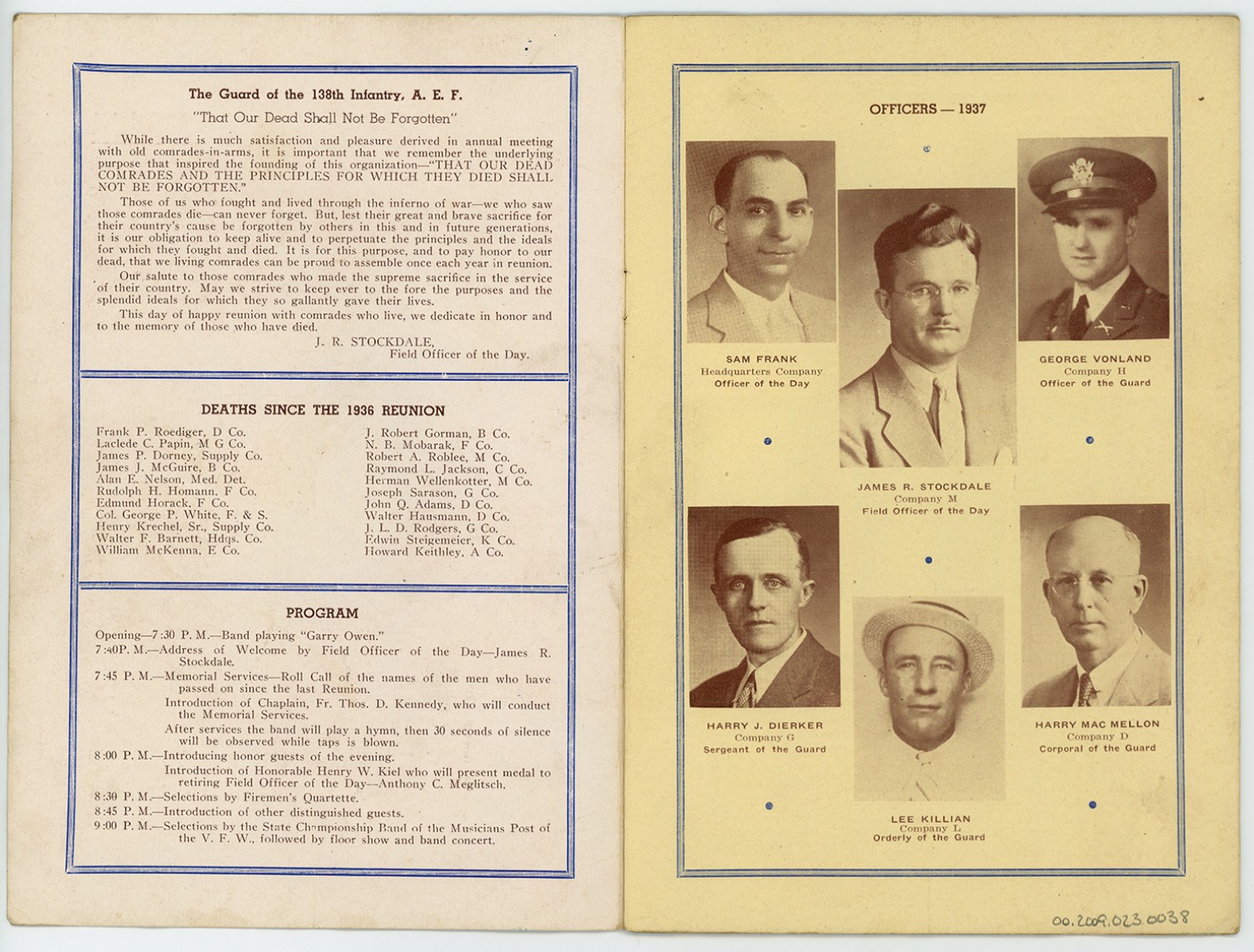 | Description | A program for the sixth annual reunion of the 138th infantry unit August 21, 1937 |