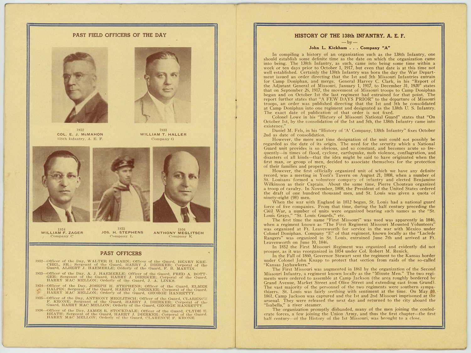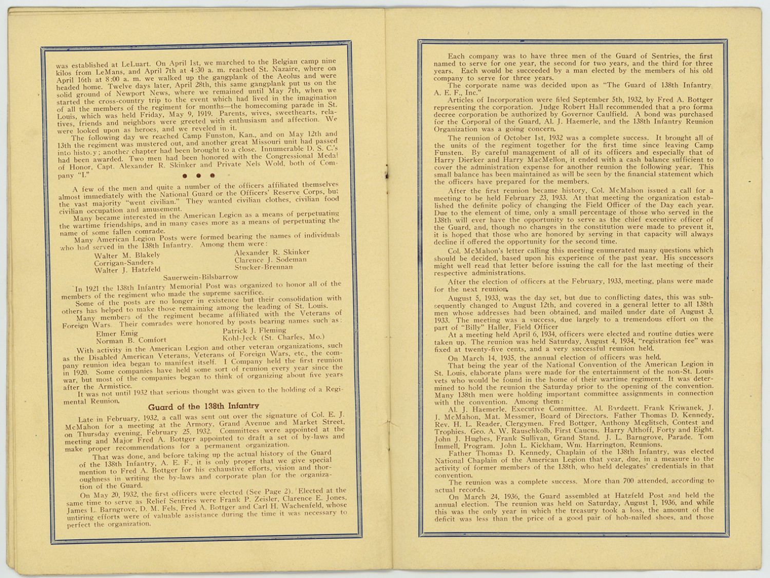 138th Infantry 6th Annual Reunion Program - August 21, 1937