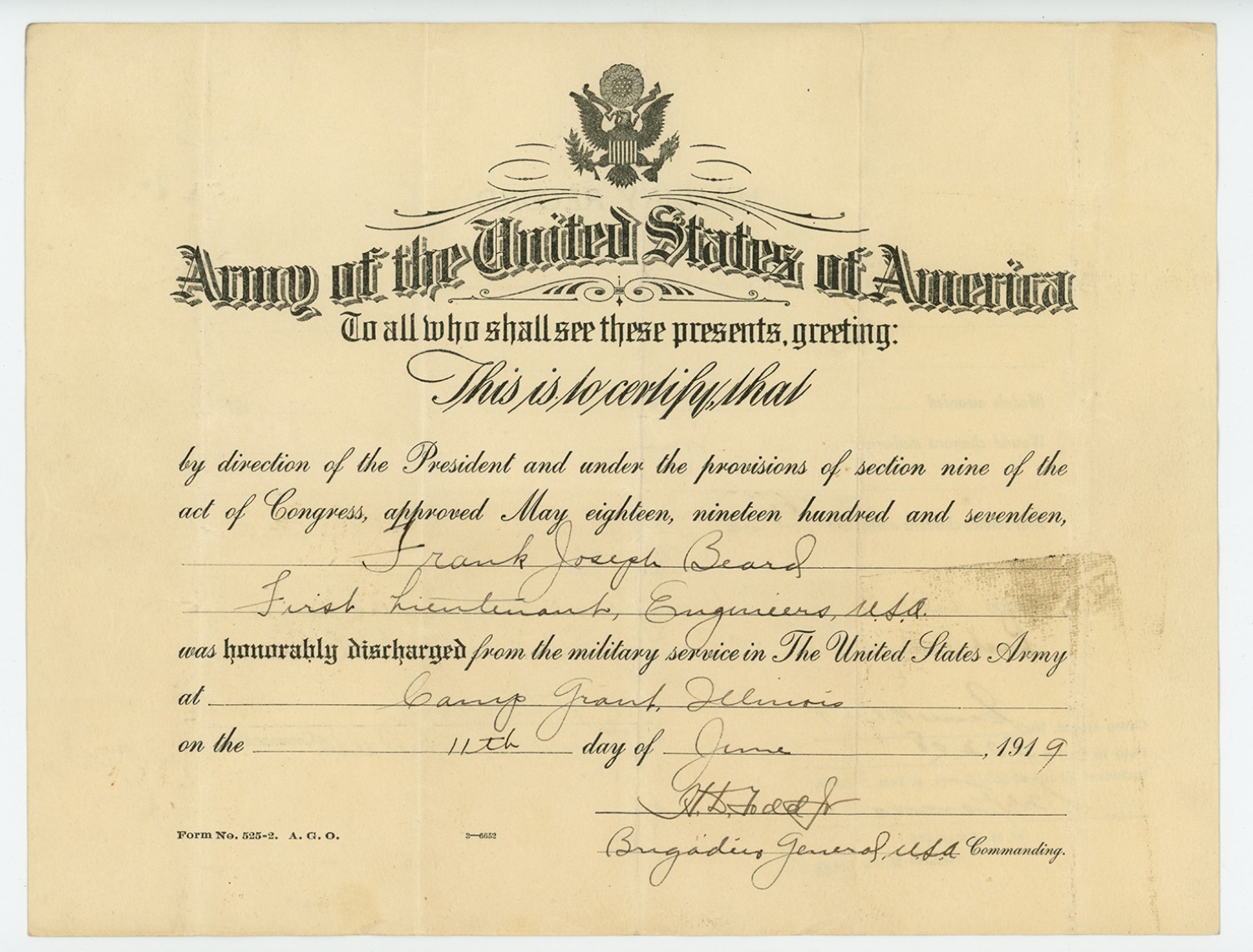 Honorable Discharge for Frank Joseph Beard - June 11, 1919