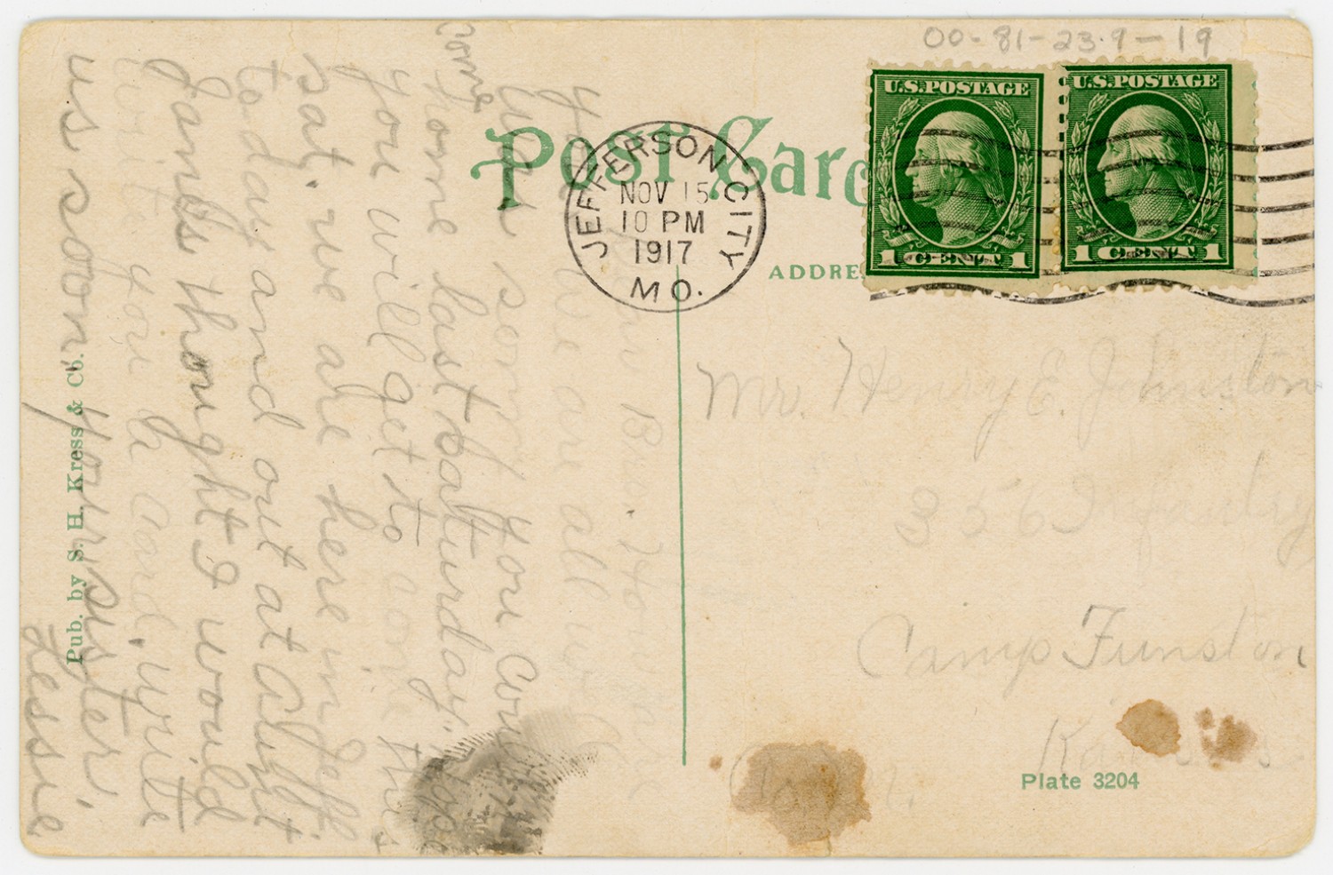 | Description | A postcard showing the Missouri Pacific Railroad depot in Jefferson City, Missouri, November 15, 1917 |