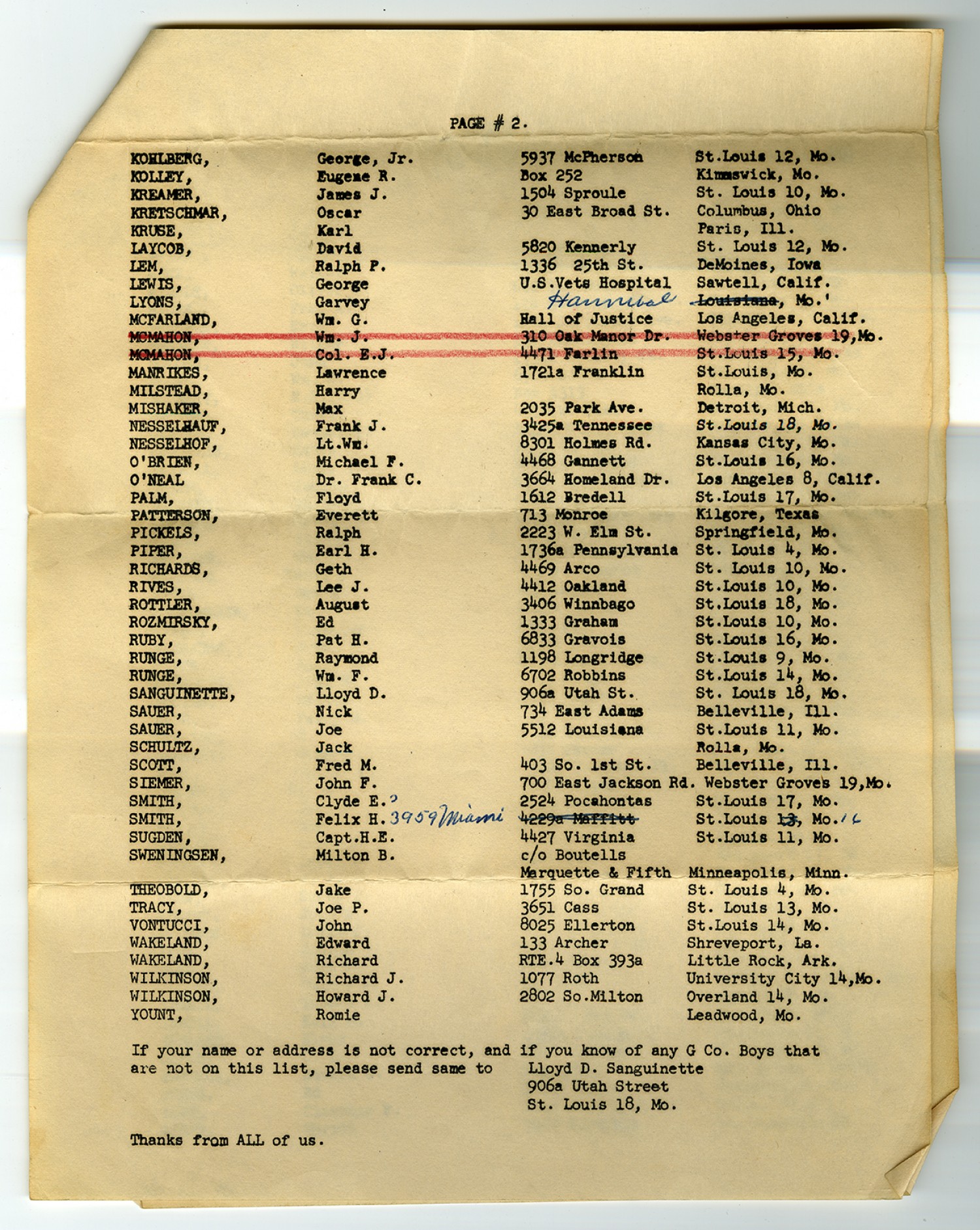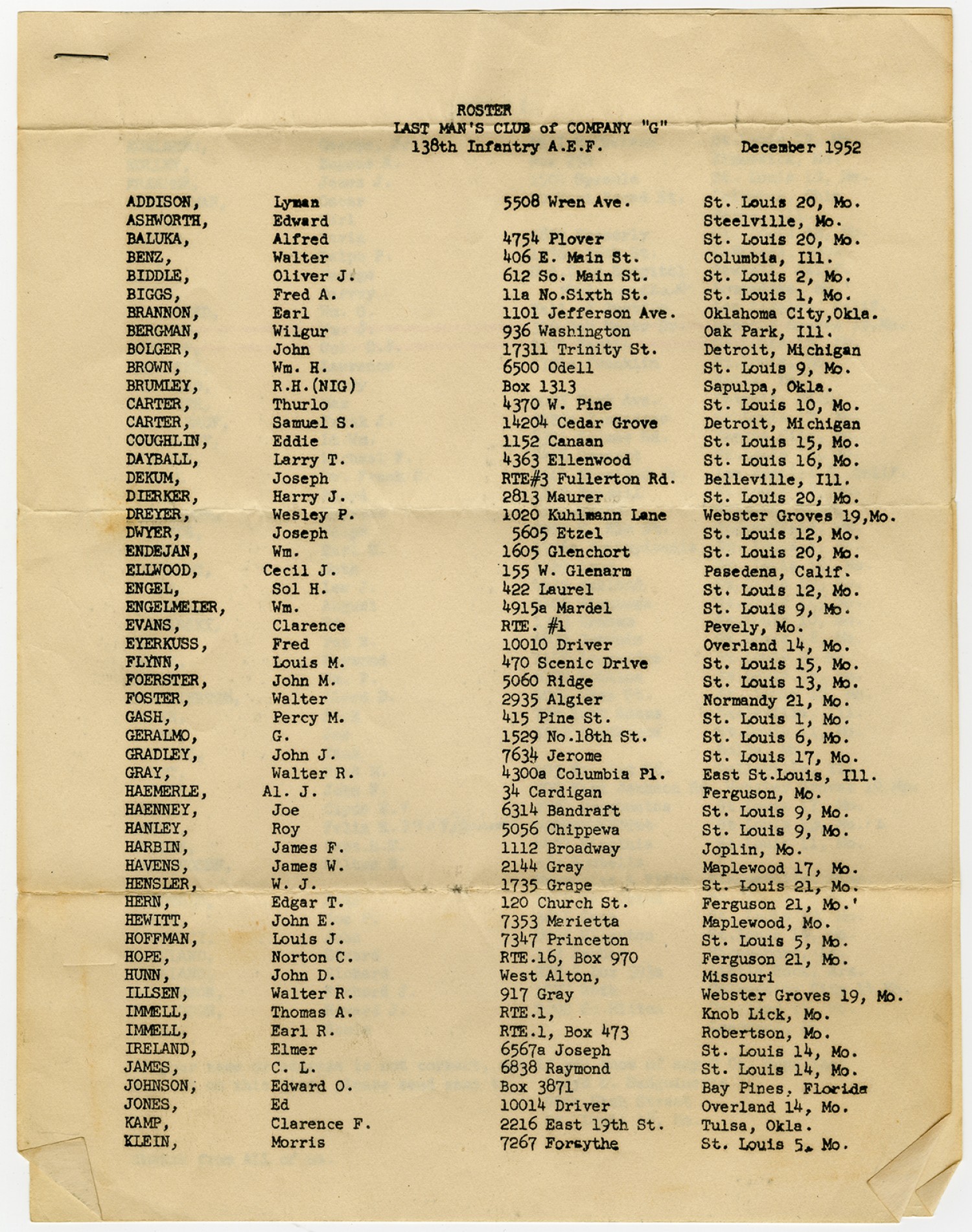 | Description | A roster showing the men belonging to Company G, 138th Infantry, December 1952 |