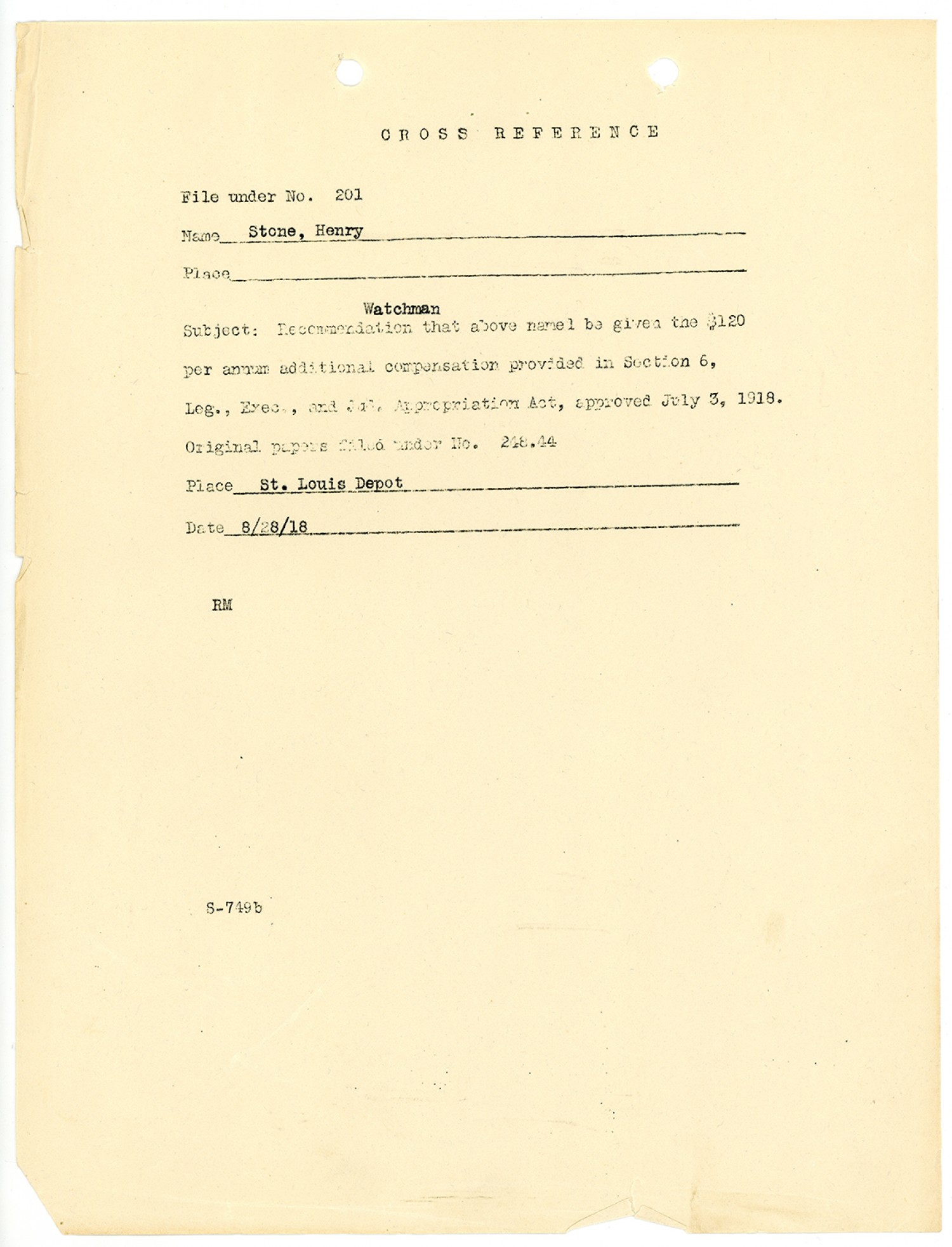 Cross Reference Sheet - August 28, 1918