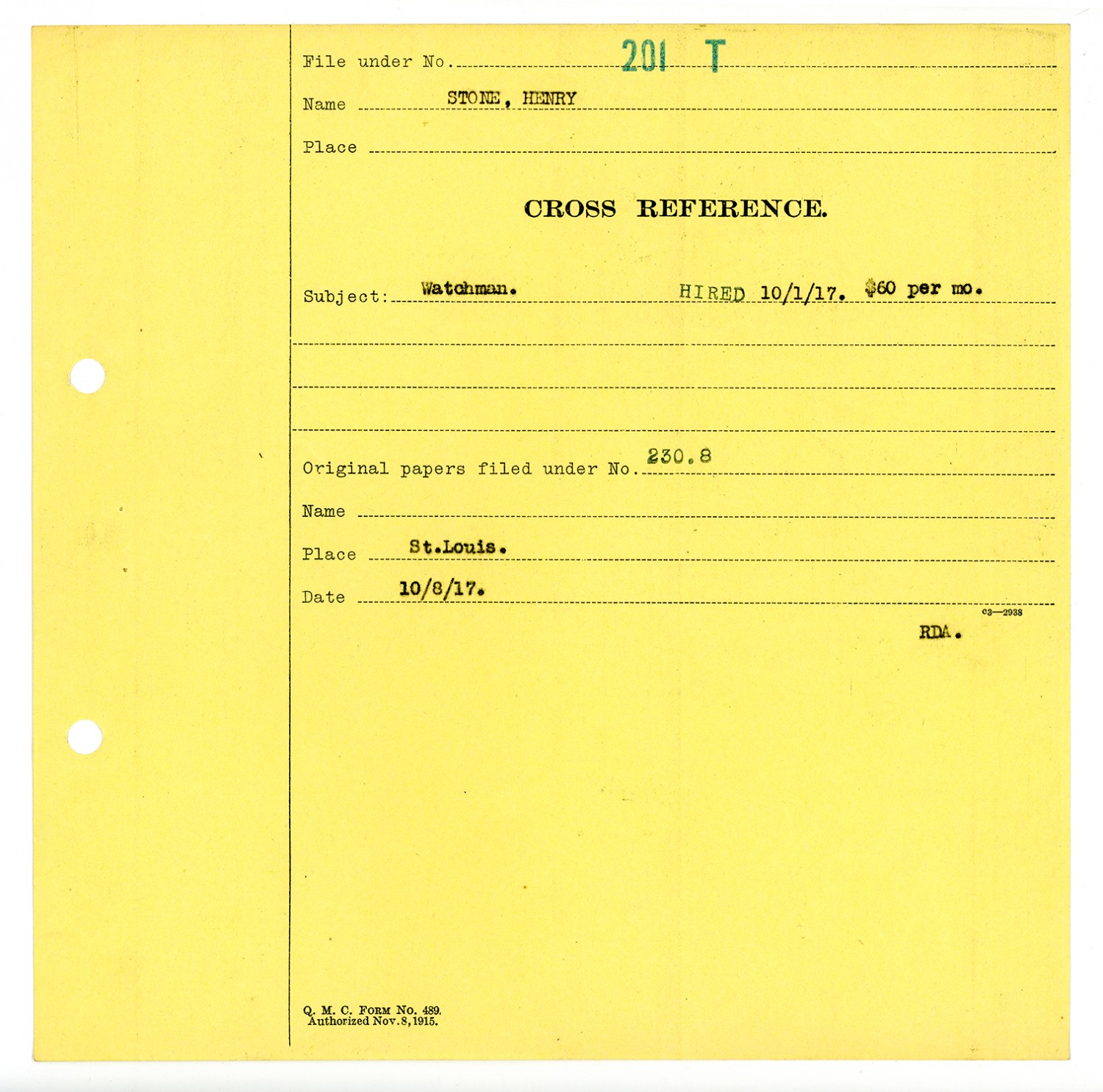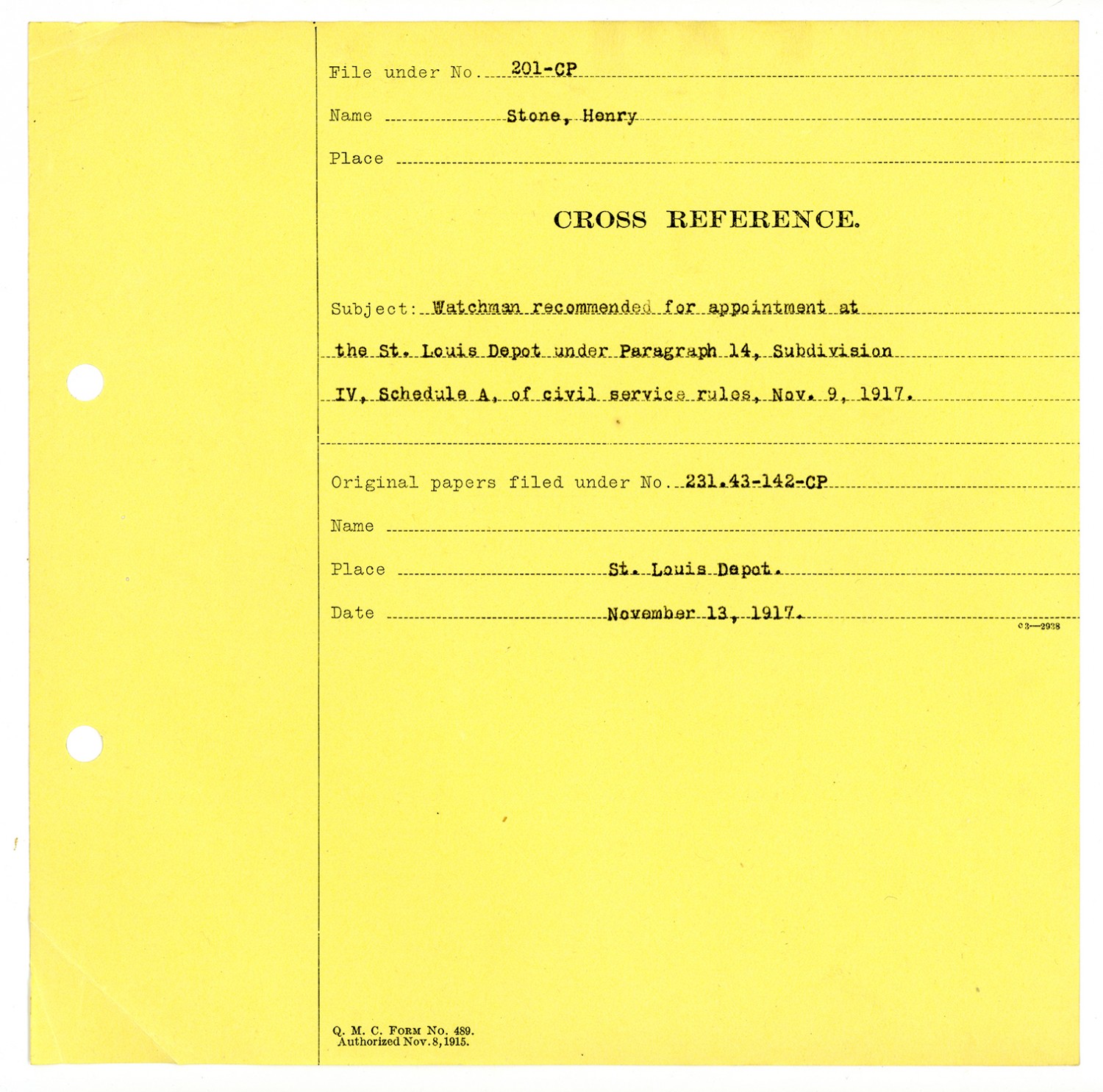 Henry Stone - Civilian Personnel File