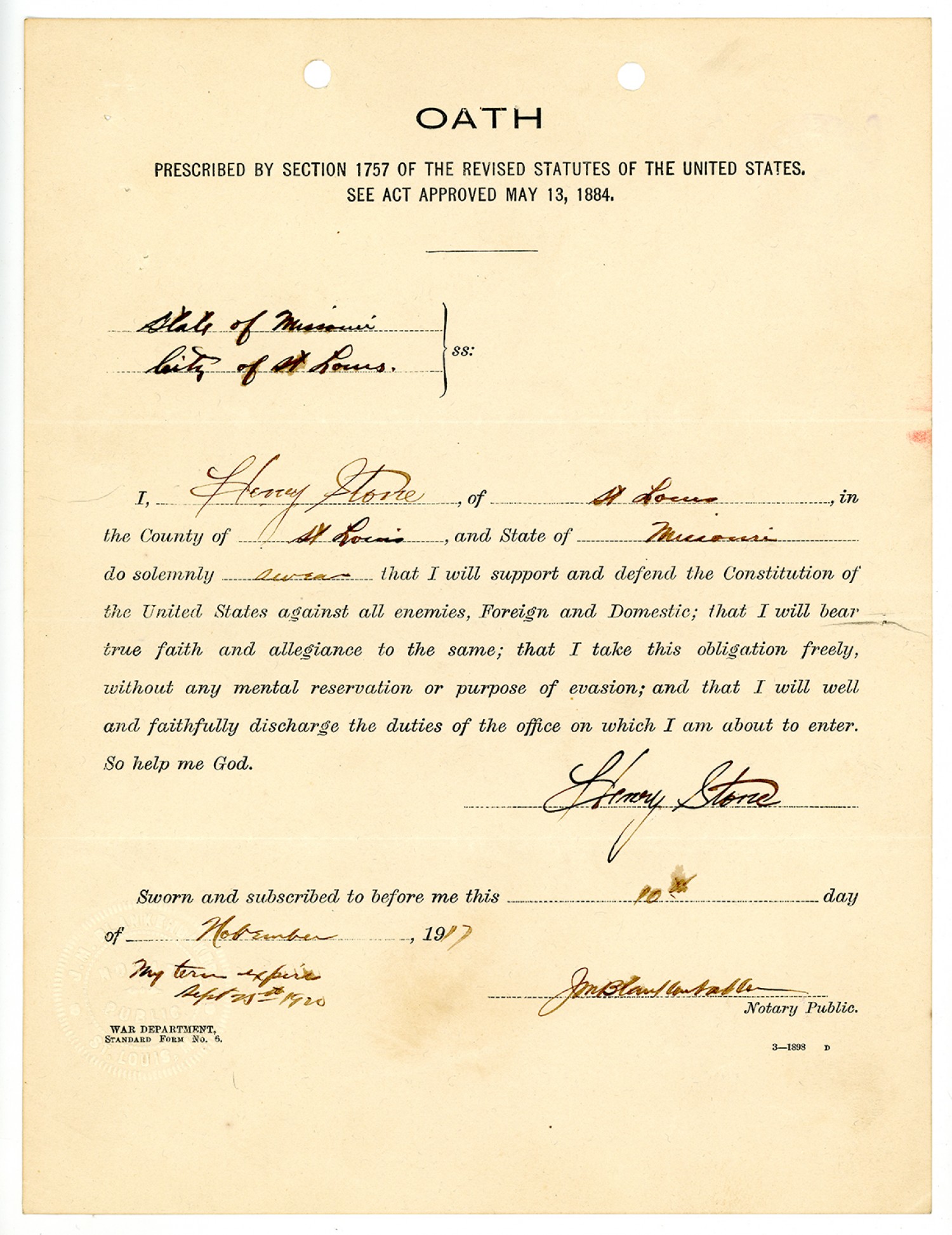Oath of Service - November 10, 1917
