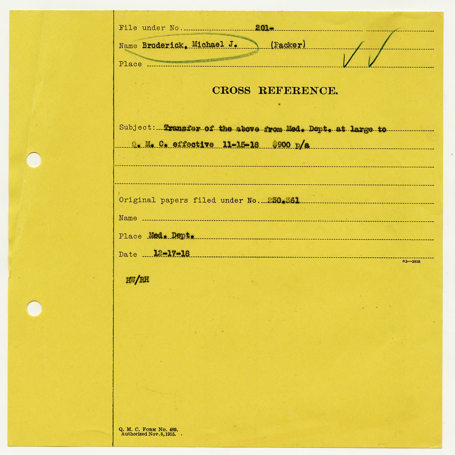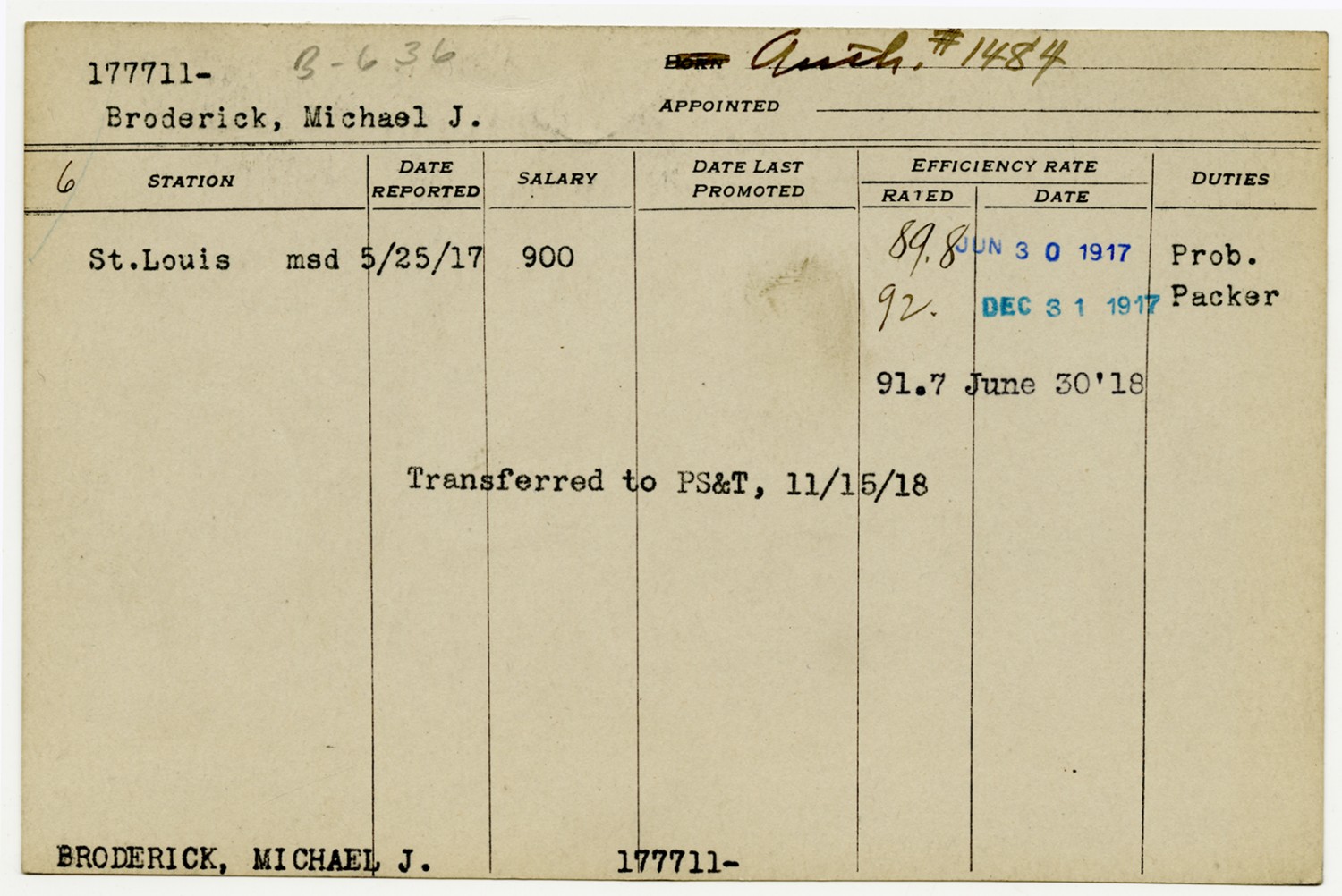 | Source | Broderick, Michael; War Department; Records of the U.S. Civil Service Commission, 1871-1981, Record Group 146; National Archives and Records Administration-National Personnel Records Center (St. Louis). |