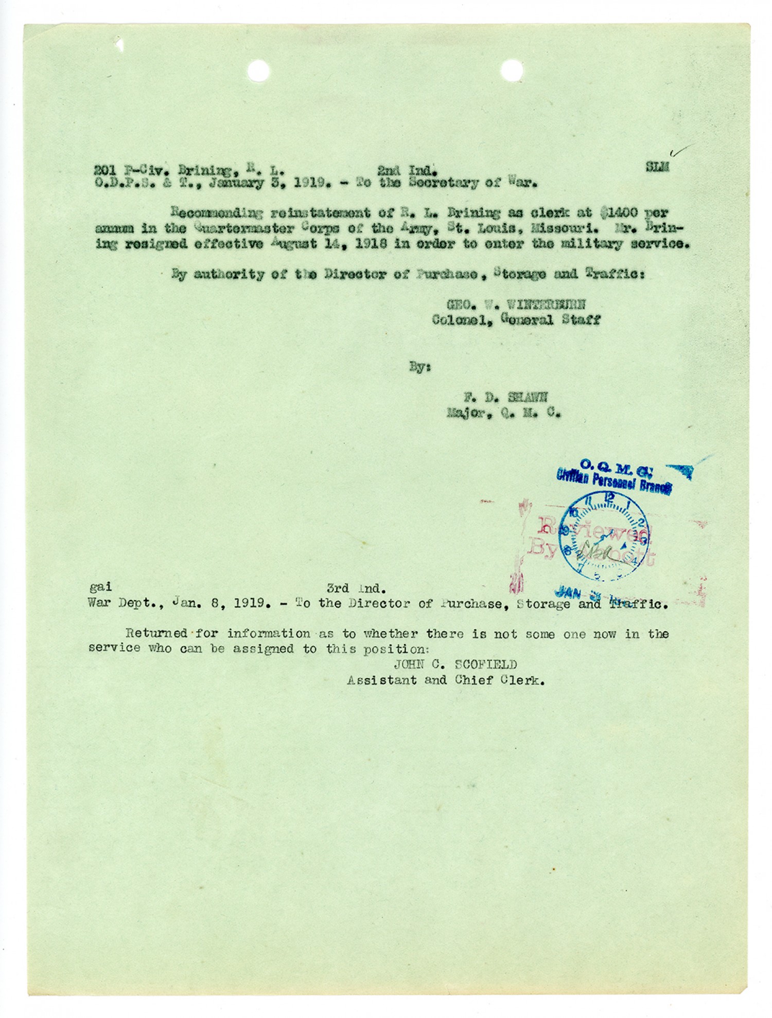 | Subject LCSH | World War; 1916-1936; Civilian; Depot Quartermaster; World War--Saint Louis, Missouri |