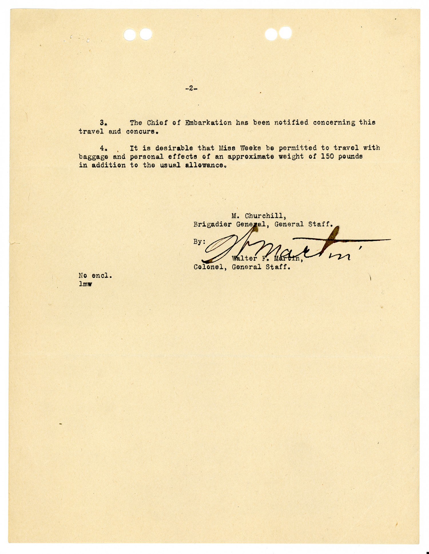 Walter F. Martin letter to the Quartermaster General of Army - November 16, 1918