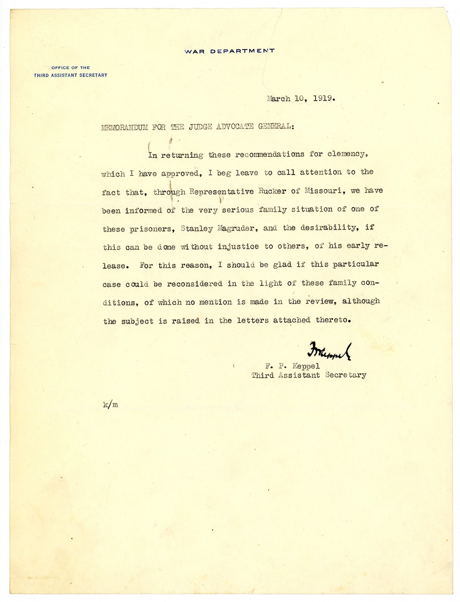 F.P. Keppel Memorandum - March 10, 1919