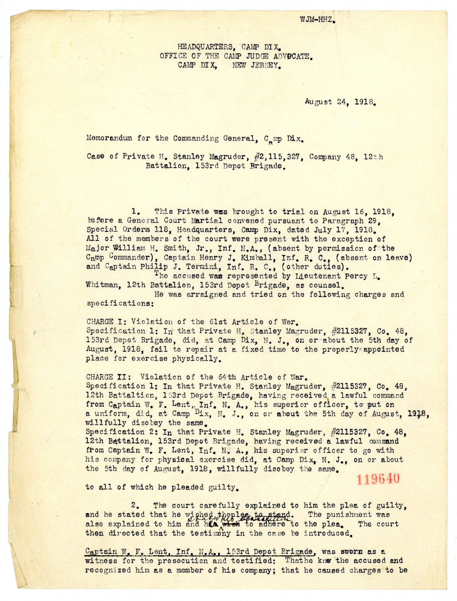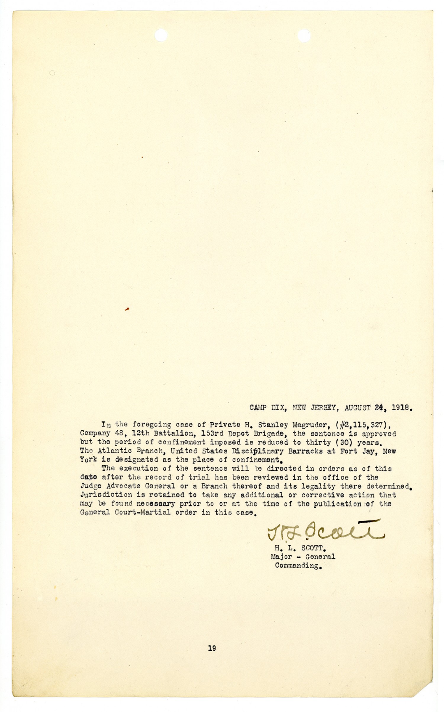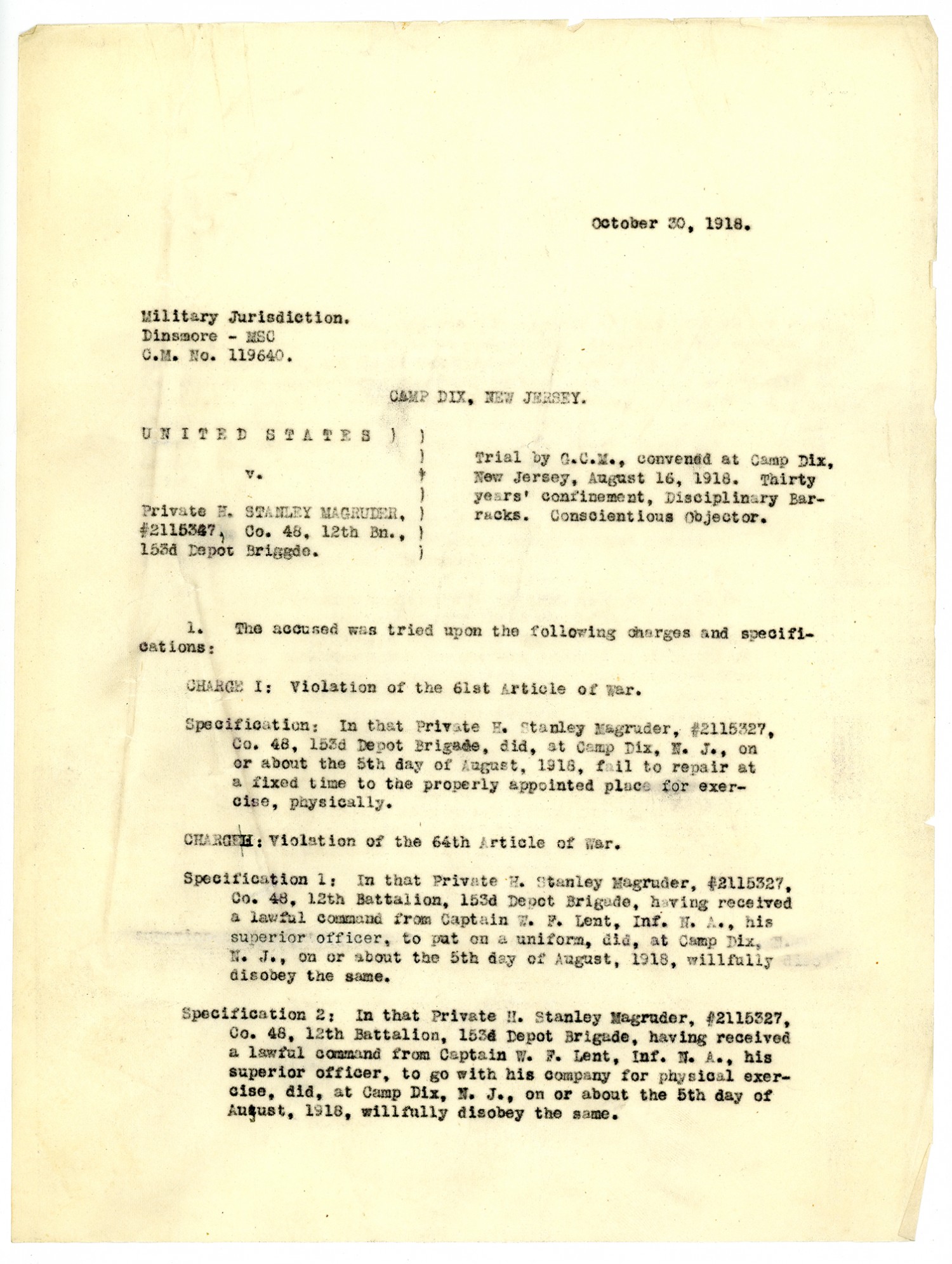 United States v. Private H. Stanley Magruder - October 30, 1918