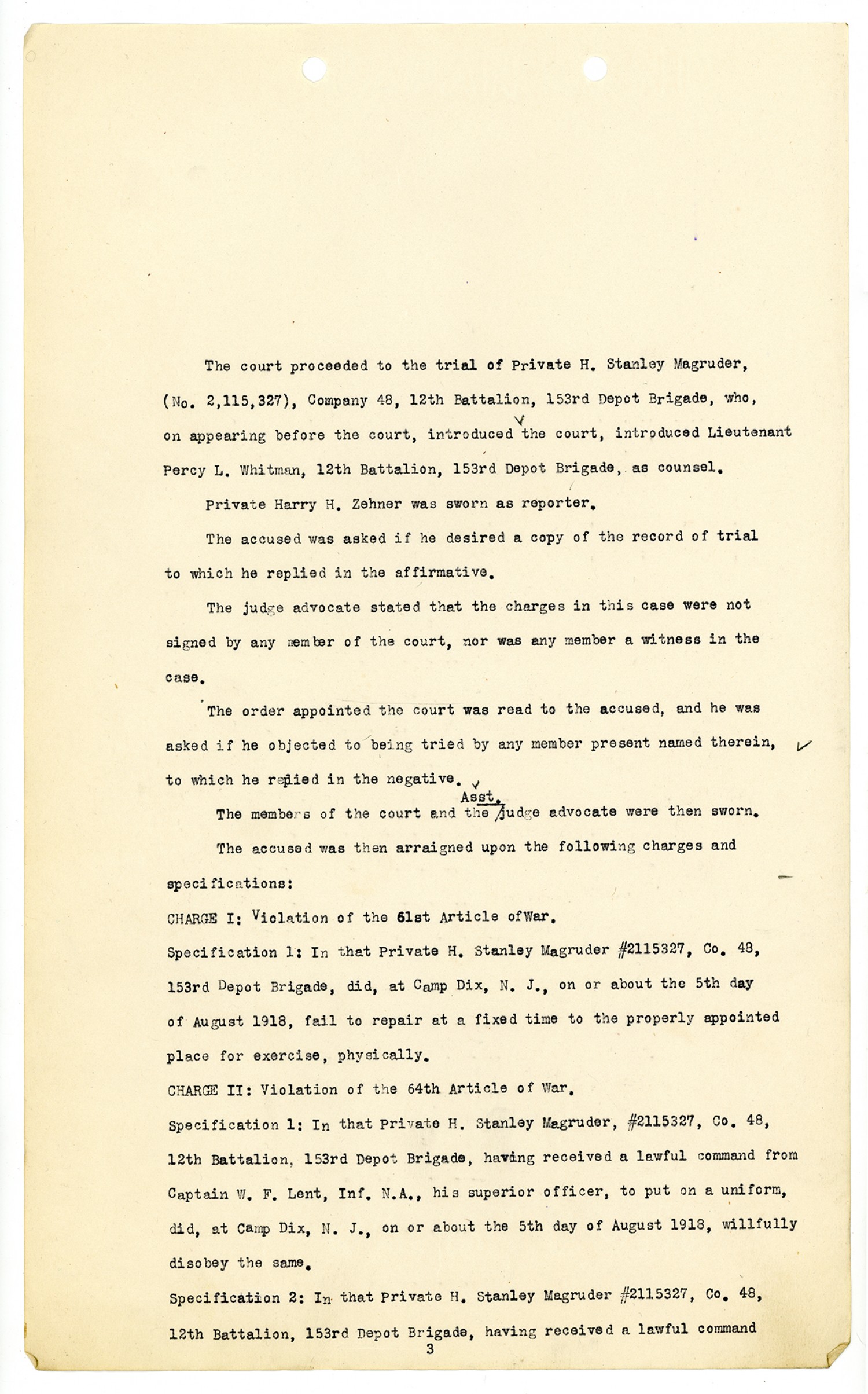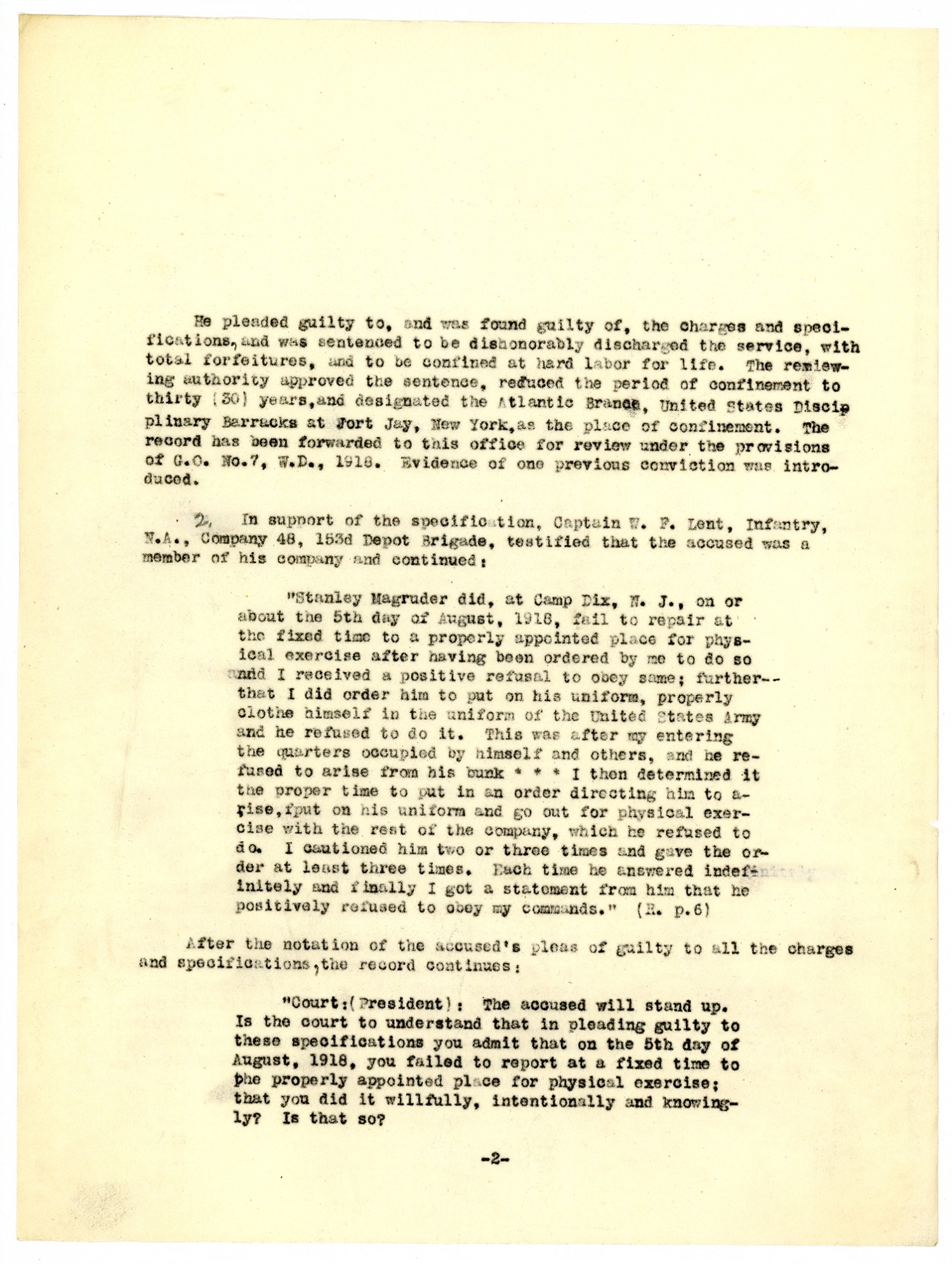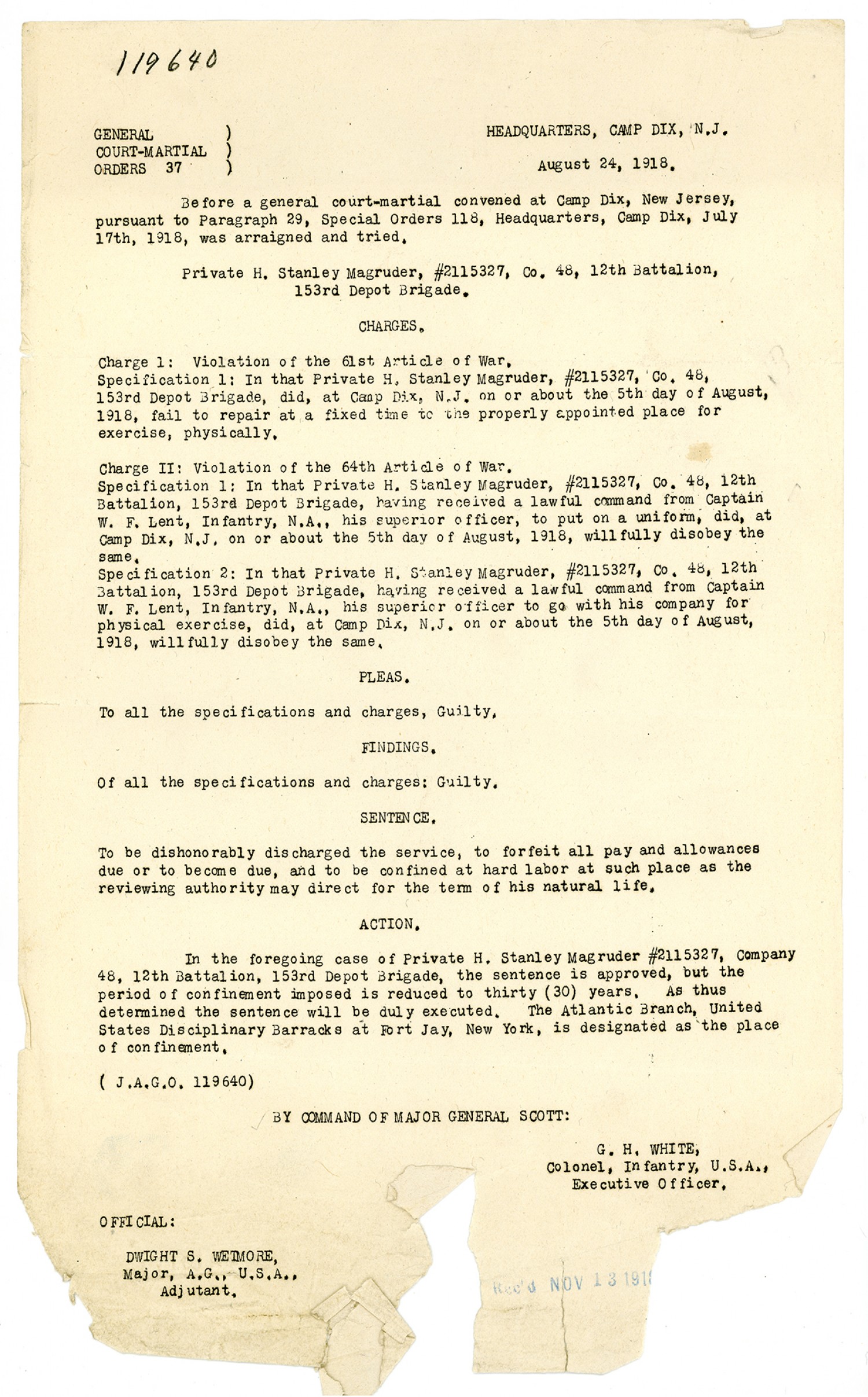 United States v. Private H. Stanley Magruder - October 30, 1918