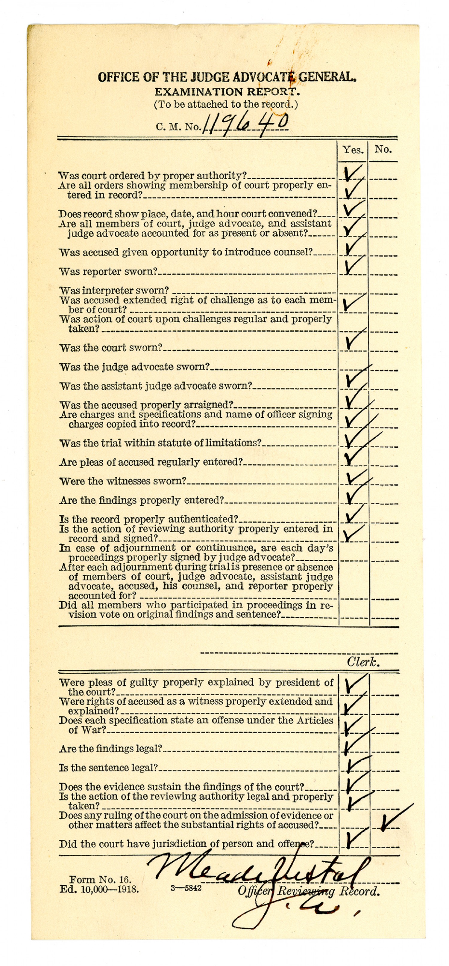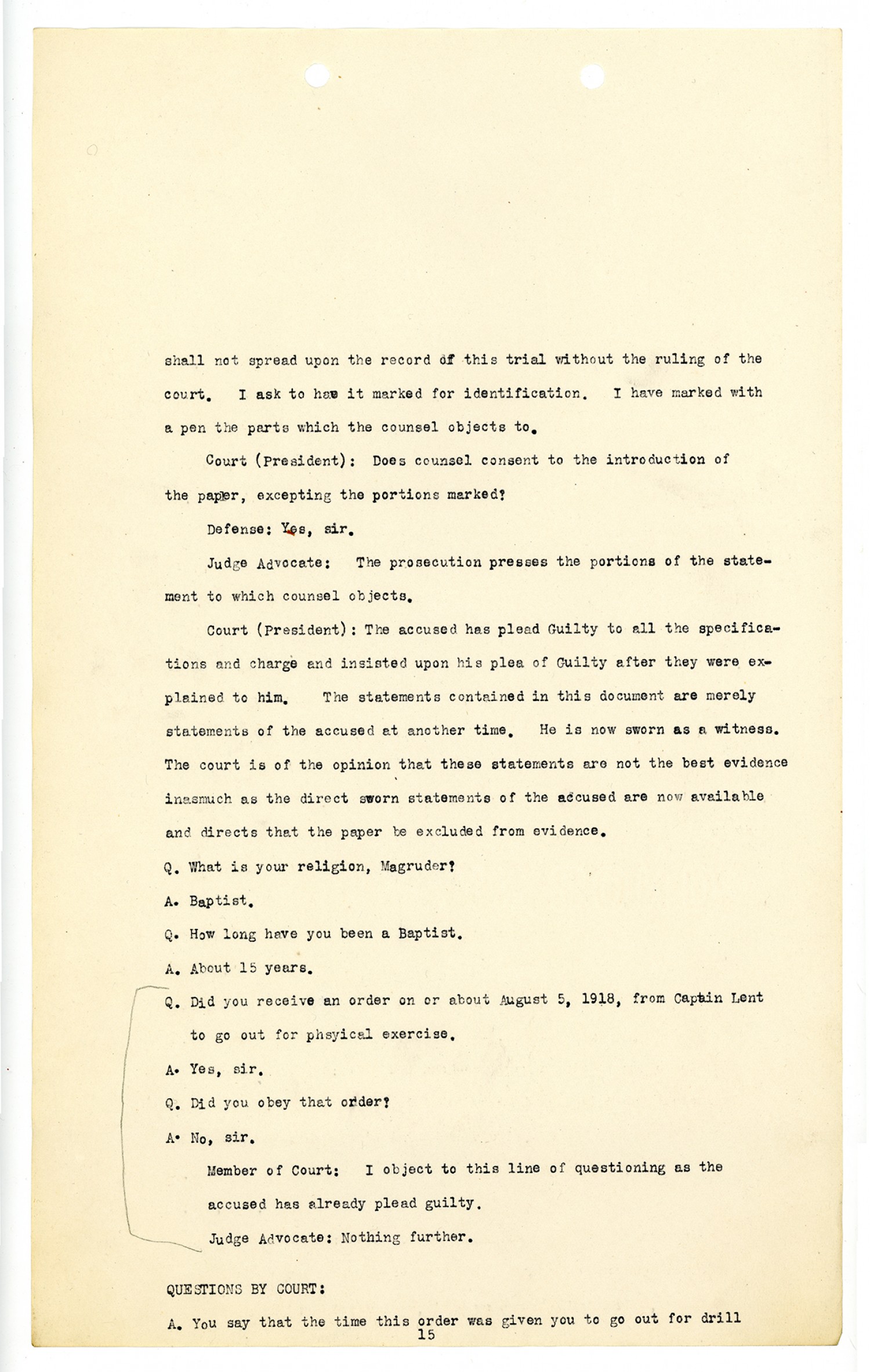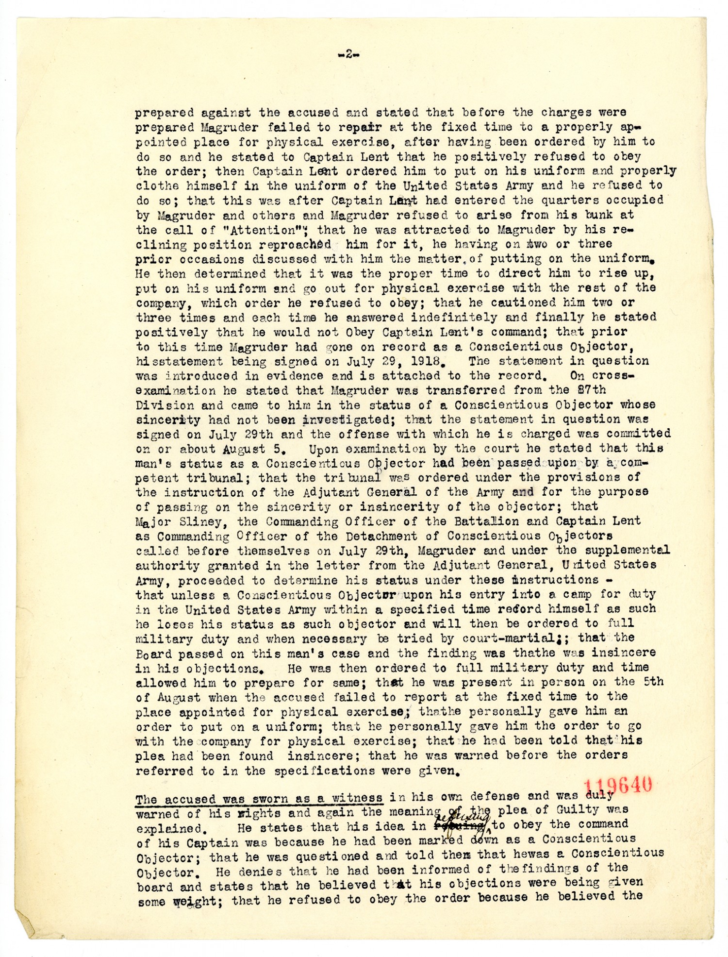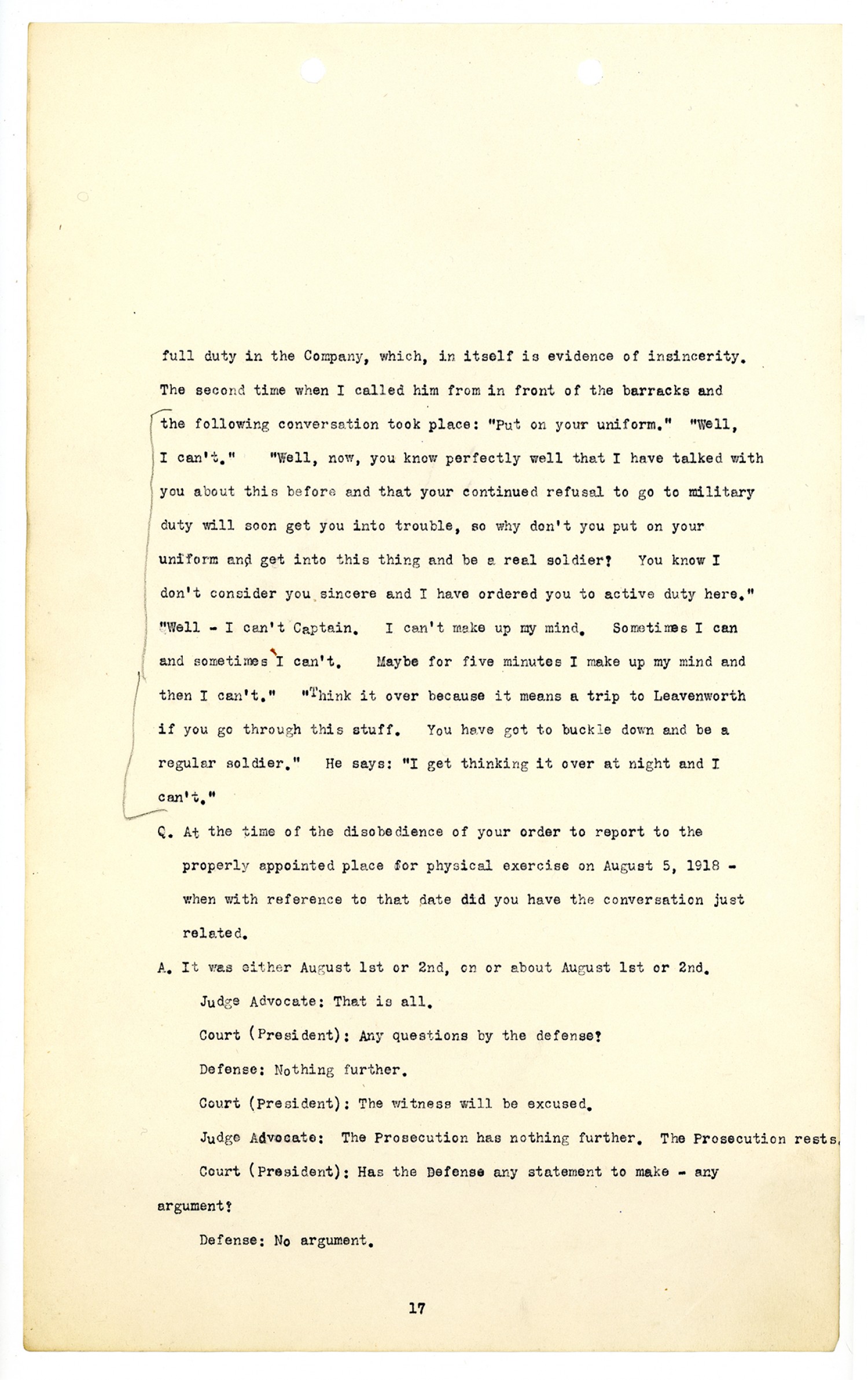 Record of Trial - July 17, 1918