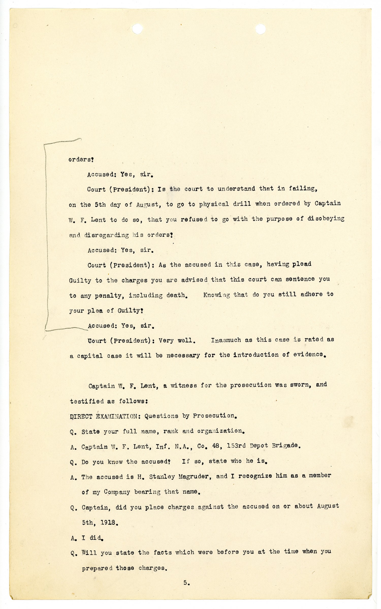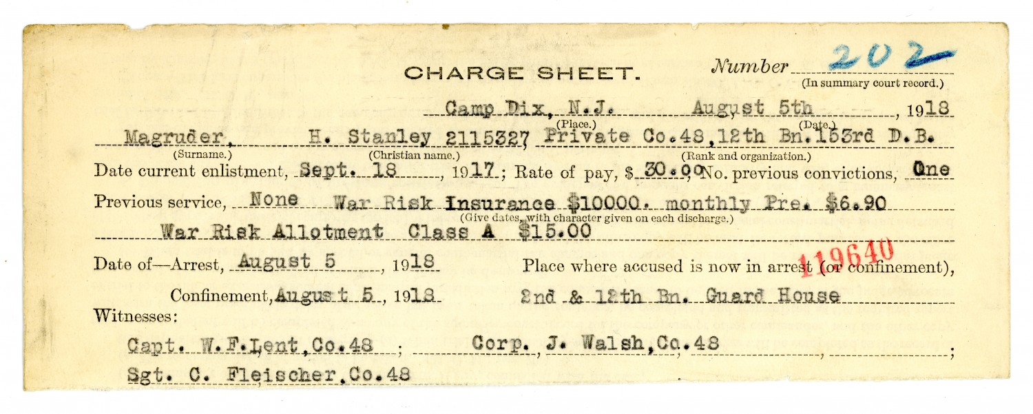 Charge Sheet - August 5, 1918