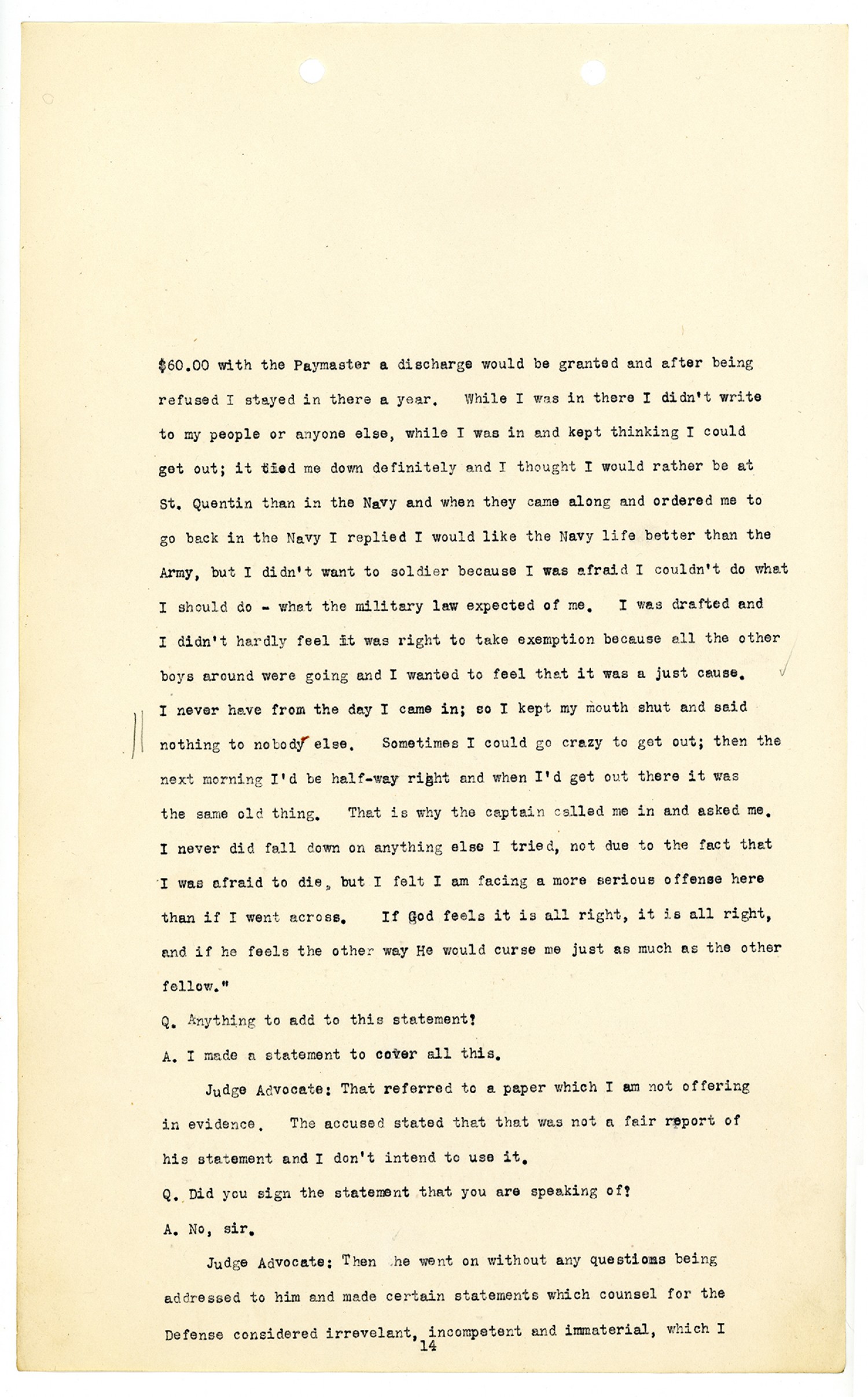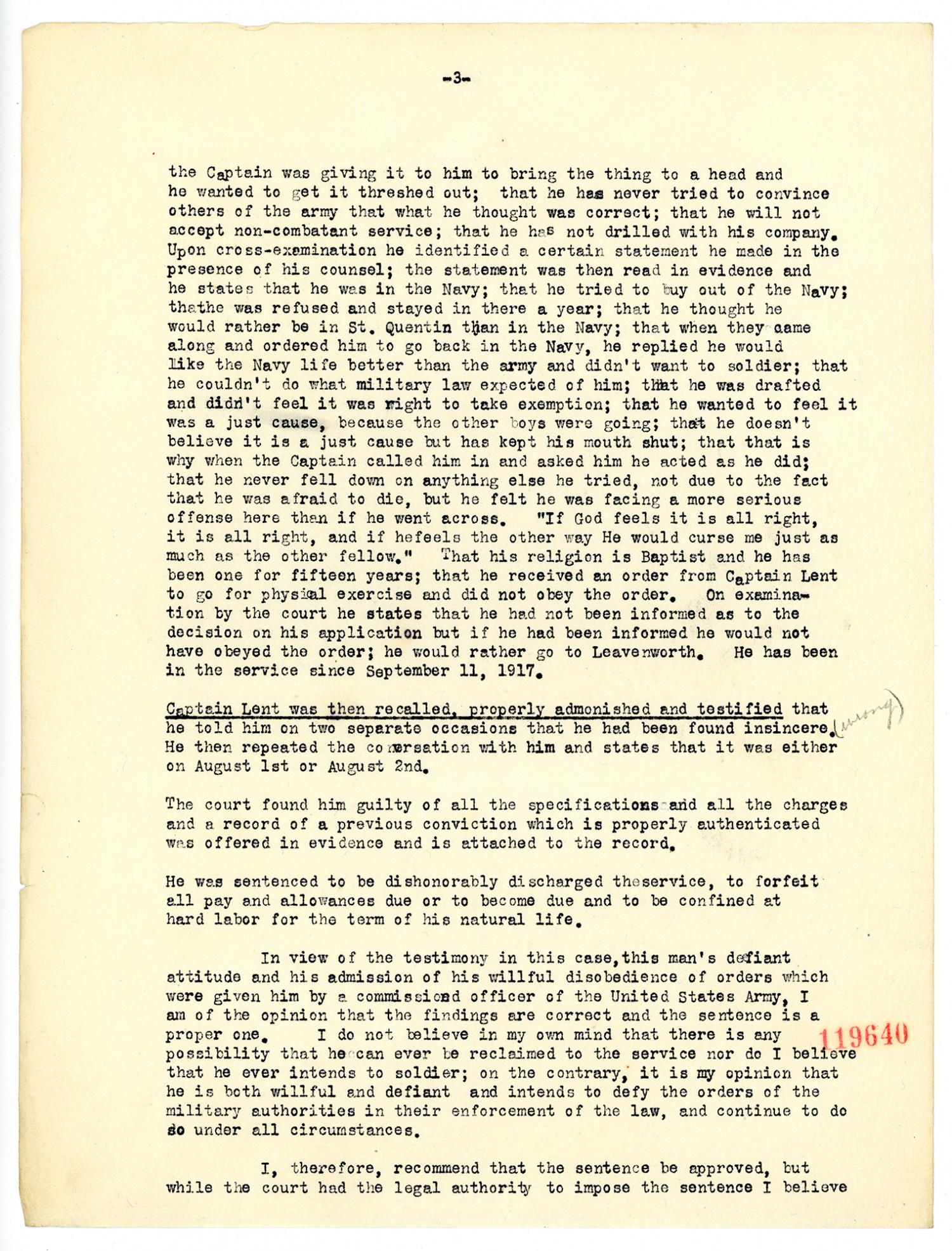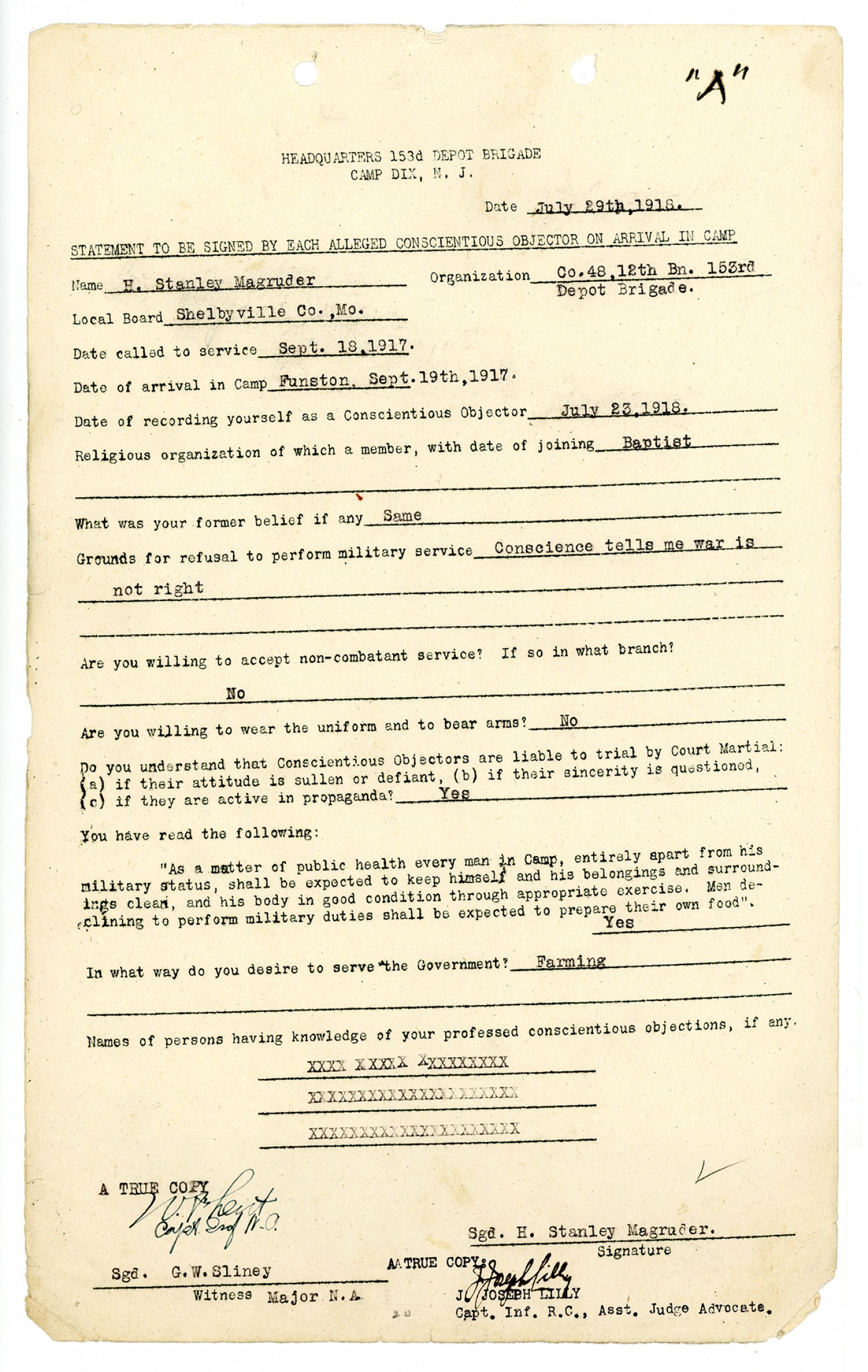 | Subject LCSH | World War; 1917-1919--; Articled of war; Concientious Objector; Camp Dix; Court Martial; Camp Funston; Camp Pike. |